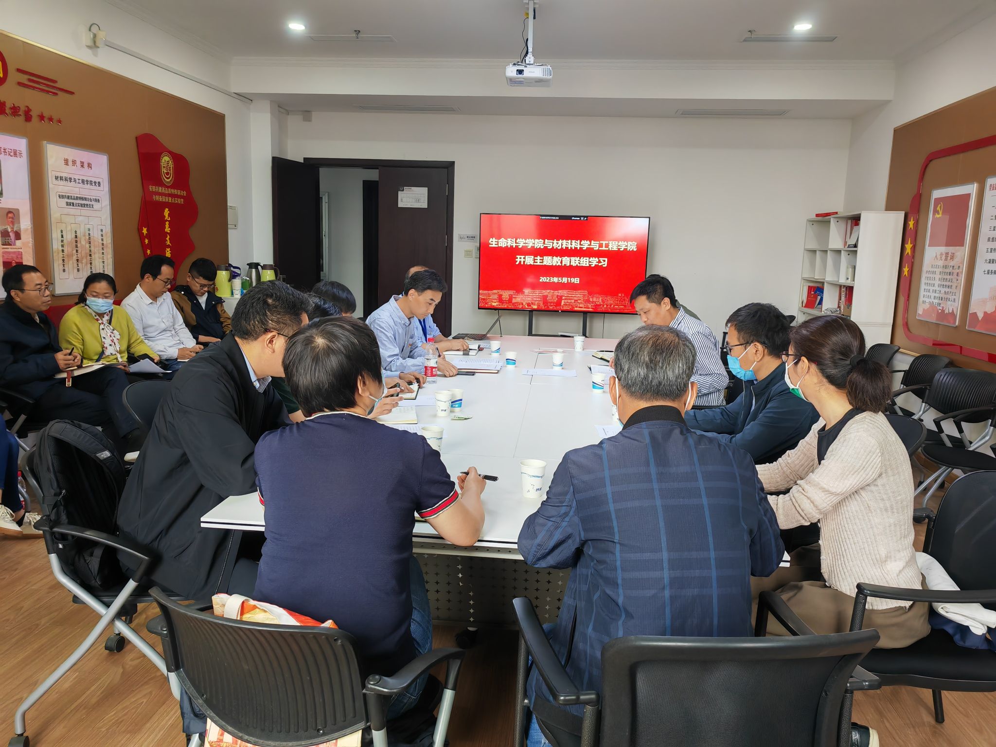 为深入开展学习贯彻习近平新时代中国特色社会主义思想主题教育,认真贯彻落实大兴调查研究的部署要求, 5月19日,学院党委书记陈付学带领教工党支部书记陈桂芳等一行赴材料科学与工程学院开展学习交流和走访调研。座谈会由材料科学与工程学院党委委员、副院长、电子信息材料系党总支书记黄健主持,材料学院党委领导班子、党总支书记、支部书记和支委会成员一同参加了座谈会。