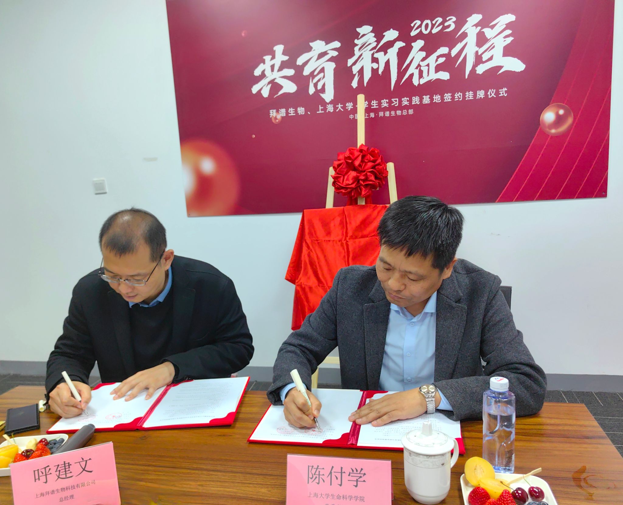 随后,陈付学、呼建文代表院企双方正式签订了共建协议,为就业实习基地揭牌。此次活动标志着365英国上市网与拜谱生物将正式建立更全面、更紧密、更深入的校企合作机制,两家单位将共同开展教学、科研、实习实训等多元化的合作,这种优势互补、资源共享、互利共赢的校企合作模式将进一步推动教育机构和企业之间的紧密联系与协作,促进资源的共享和优化配置,为社会培养更多优秀的人才,也期待着协同育人工作的新突破。