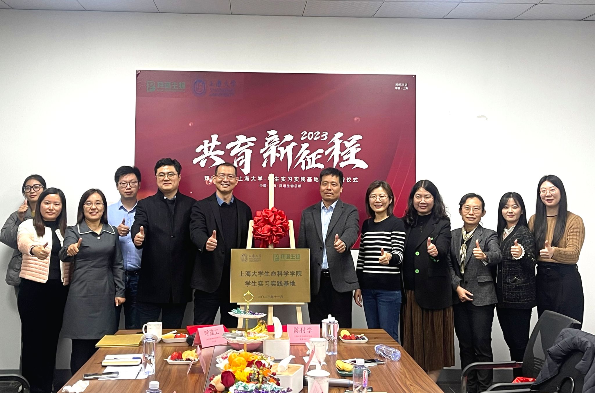 就业实习基地的建立,是贯彻落实职业教育改革和发展的重要举措,是进行“产教融合、产学合作”令人期待的优质途径,也是扩大探索校企深度合作的有益尝试。近日,365英国上市网党委书记陈付学,党委副书记、副院长朱晓青,副院长高海燕,副院长袁晓君,团委书记、就业主管陆晨,研究生辅导员王月蓉一行来到上海拜谱生物科技有限公司(下称“拜谱生物”)走访交流,就共同建立365英国上市公司学生生涯发展教育与就业基地签订协议并挂牌。拜谱生物总经理呼建文、销售总监陈华伟、市场部总经理梅黎伟、行政总经理于红岩等出席活动。
