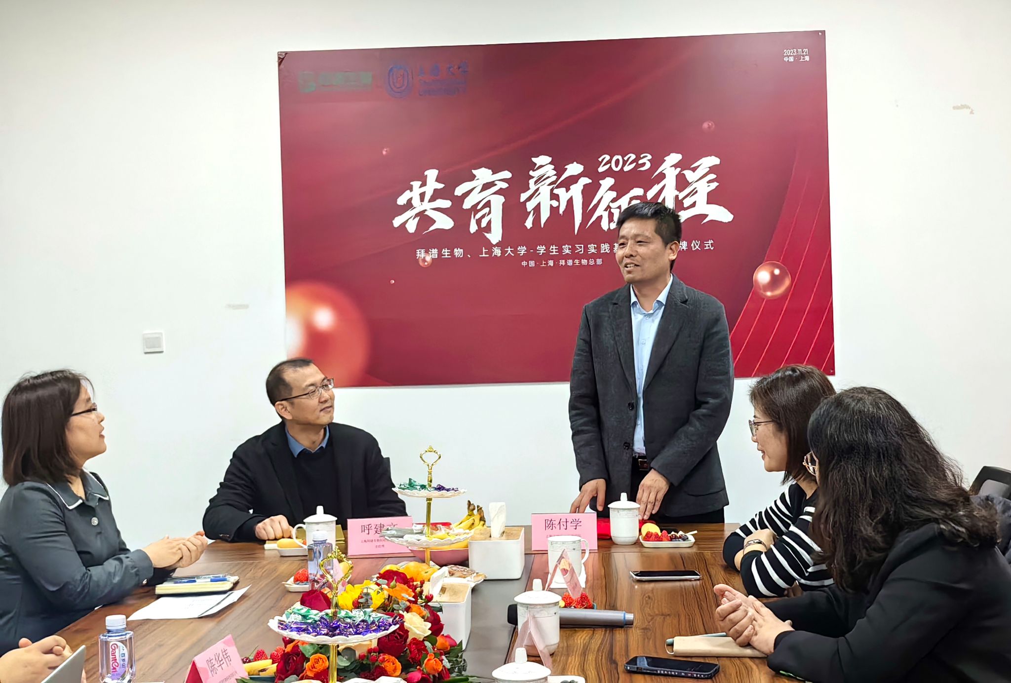 365英国上市网党委书记陈付学在致辞中表示,建立“校企联动”机制,通过学校与拜谱生物的合作,共同打造一个实习基地,对学生求职实习问题进行多方位的关注和解决,具有重要意义,公司收获更多人才,促成企业良性发展,校企双方双向奔赴、共同发展。