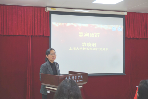 接着,教务部运行处处长袁晓君老师致辞,鼓励同学们积极参加更多的学科竞赛、科创比赛等,在更多的平台展示自己的动手实践能力和科学创新能力。