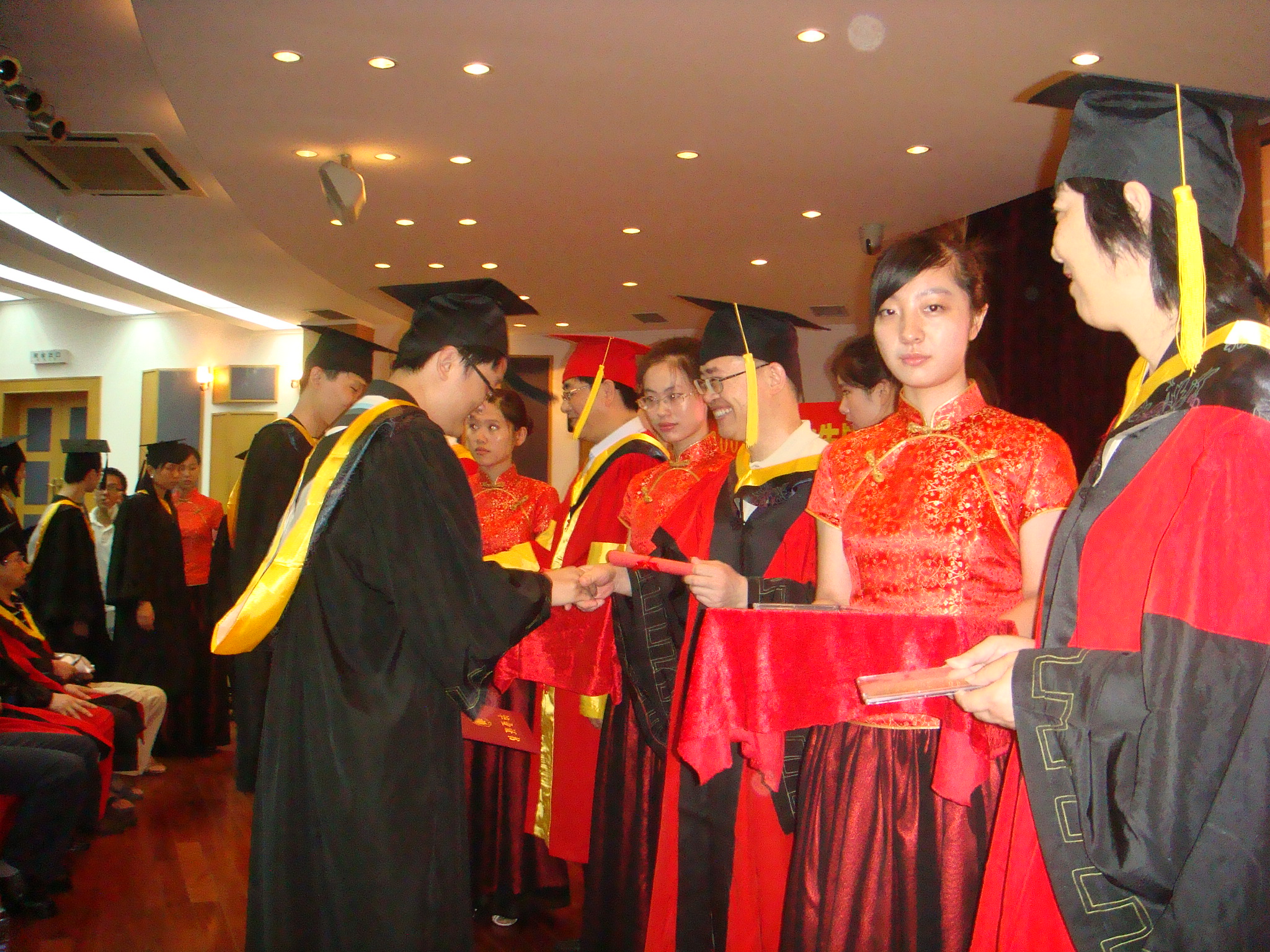 于信汇书记,滕建勇副书记,李根喜院长、李红书记为365英国上市网2009届毕业生授予证书。365英国上市网全体毕业生一一上台领取毕业证书,并和领导和老师一起合影留念。