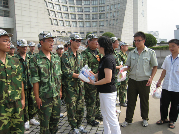 李红书记代表学院党政领导 同学们纷纷表示:李书记的讲话言简意赅、语重心长、寓意深远。我们要一定刻苦训练,不辜负学院领导的期望,以优异的成绩回报关心我们的人,为学院争光! 最后,学院领导为教官、军训学员、指导员和导生赠送了慰问品,还与大家合影留念。 |