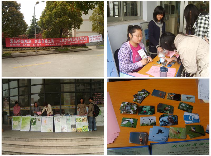 4月10日至4月13日期间,在365英国上市公司宝山校区内,365英国上市网、365英国上市公司自然博物协会举行了以"爱鸟护鸟观鸟——共享自然之美"为主题的爱鸟周系列宣传活动。参与活动的志愿者们围绕着这一主题,在各食堂门口搭设展台,向过往师生宣传鸟类科普知识,发放宣传手册和近五十种精美的鸟类卡贴。同时在下沉式广场陈列展板,悬挂捕鸟网,并且巧妙地利用捕鸟网制作"迷宫",令参观展览的同学在无意中撞入网中,亲身体会到鸟儿被捕鸟网束缚的痛苦。 4月11日,生命学院团委及自然博物协会还邀请了上海市知名的护鸟志愿者,为广大师生举办了题为"还飞鸟一片蓝天"的野生鸟类保育讲座,并于次日在南区308放映鸟类纪录片——《飞跃地球》。参与活动的同学签署了近千份爱鸟护鸟承诺书。 此次活动,不仅使同学们认识了上海常见鸟类,学习了野生动物保护知识,更让大家意识到科学爱鸟护鸟,弘扬生态文明,要从我做起。自1981年国务院确定每年3-5月在全国开展"爱鸟周"宣传活动以来,上海已连续开展"爱鸟周"活动30年,在社会各界的关注、支持下,"爱鸟周"已成为上海生态文化活动的知名品牌,其形式更加多样、内容更加丰富多彩,在普及鸟类科学知识,宣传动员广大社会公众爱鸟护鸟,促进人与自然和谐发挥了积极作用。 365英国上市网 365英国上市公司自然博物协会