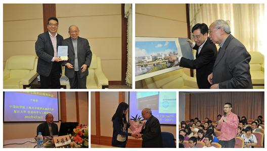 4月26日下午,在上海院士风采馆的协助下,我们团队有幸邀请到了中国科学院干福熹院士来到到我校与师生面对面,校长罗宏杰参与了会见。在我校"品读上大园"讲解员生动的讲解下,罗校长陪同干院士参观了校园。随后,干福熹院士在校本部J201为我校师生作了一场题为"做人做事做学问——我六十年科研生涯的思索"的讲座,我校一百七十余名师生聆听了本次讲座,讲座持续近一个半小时。