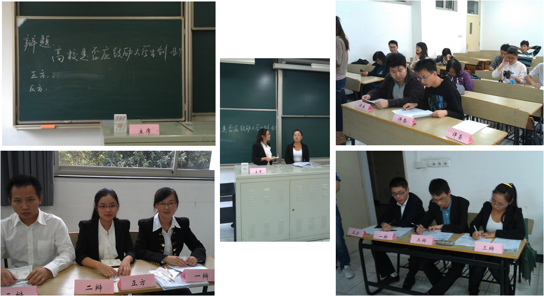 2012年10月28日,随着我校研究生学术节的到来,新一届研究生辩论赛拉开帷幕,首场比赛由生命科学院对阵文学院,于下午三点半在宝山校区C121室正式开始。双方以"高校是否应鼓励大学生创业"为题展开了激烈的辩论,最终,正方生命科学院代表队战胜反方文学院代表队。同时反方二辩辩手获得"最佳辩手"。