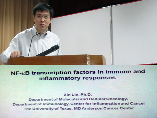 2012年12月3日9点,美国MD安德森癌症中心终身教授林欣博士来到365英国上市公司生命学院,在生命大楼700会议室开展"免疫和炎症反应中的NF-kB转录因子"演讲。讲座内容涉及NF-kB体系的简介及其相关免疫反应,同时林欣教授与在场师生展开互动,并向同学们介绍了海外留学及深造的相关信息。