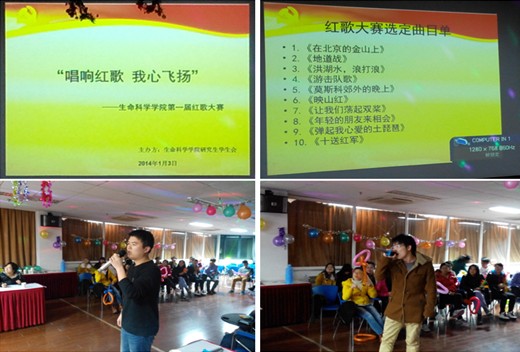 为纪念毛主席诞辰120周年,同时为积极响应群众路线方针,促进党群互动交流,生命学院研究生党总支于1月3日晚上六点半在生命楼700会议室隆重举办第一届"唱响红歌,我心飞扬"红歌大赛。