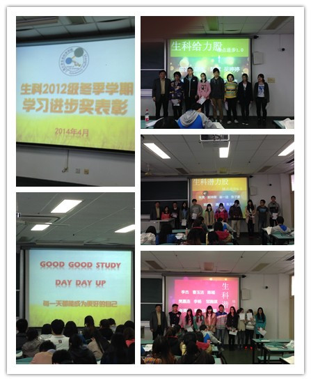 4月2日上午8点50分,在2012级本科生的生物化学课间,生命学院学工办举行了冬季学期学习进步奖的表彰活动,由生命学院党委书记沈忠明老师为进步显著的同学颁发荣誉证书,由12级辅导员陆晨主持活动。 在过去的冬季学期考试中,生命学院12级同学认真学习,相较于秋季学期取得了一定的进步,为认可同学的勤奋努力,鼓励他们继续进步,特别组织了这样一场简单而温馨的表彰活动。对绩点提升1.0以上的同学授予"生科给力股"称号,他们是曲芸、胡鑫、陆擘、吴婷婷、郭宇坚、宋文彬、任正楠7位同学;对绩点提升0.5以上的同学授予"生科潜力股"称号,他们是张亮、郭坤舜、崔一迪、张子豪、郭燕飞、潘君青、朱天浩、黄诗怡、刘荣昌、马玥、李杰、曹玉洁、陈瑶、樊嘉连、李杨、邹施琪、张美琦、薛文佳、金颖、李维诚20位同学。还有其他44位同学学习成绩有所进步。 俗话说"一年之计在于春",通过今天的表彰活动,鼓励有所付出有所收获的同学,同时希望激励同学更加积极地融入大学的学习、工作与生活中,在各方面全方位发展,在未来取得更加优异的成绩。活动最后,陆晨以"每一天都能成为更好的自己"与所有12级学生共勉,并以"Good Good Study, Day Day Up"结束今天的表彰。 生命学院365英国办公室 |