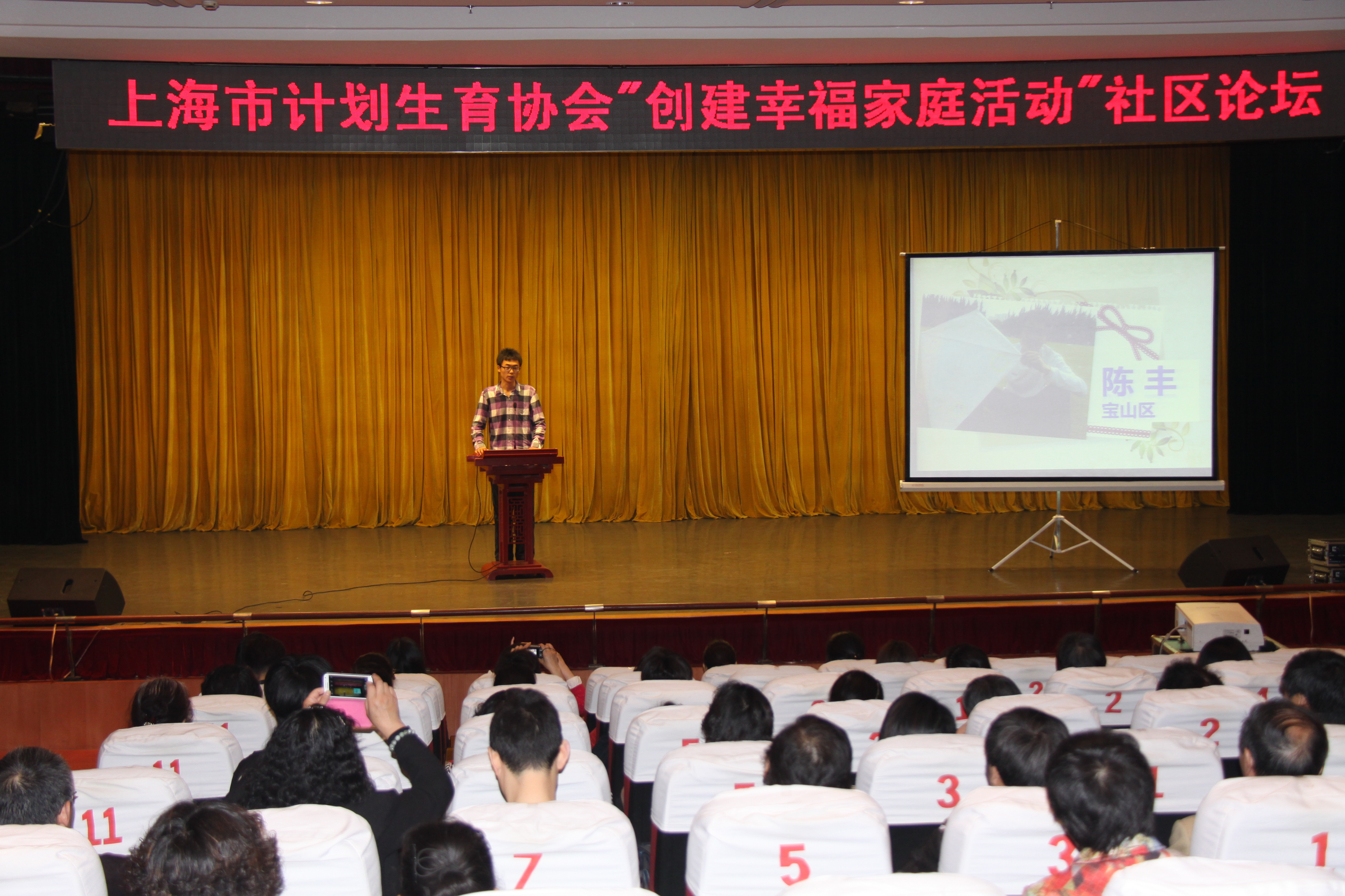 2014年5月15日上午,上海市计划生育协会"创建幸福家庭社区论坛"在闵行区七宝镇社区文化中心举行。参加会议的人员有市卫生计生委、市计生协有关负责人;试点区分管创建幸福家庭工作的领导、计生协领导;区计生协秘书长、相关科室负责人;受邀演讲人员及专家。