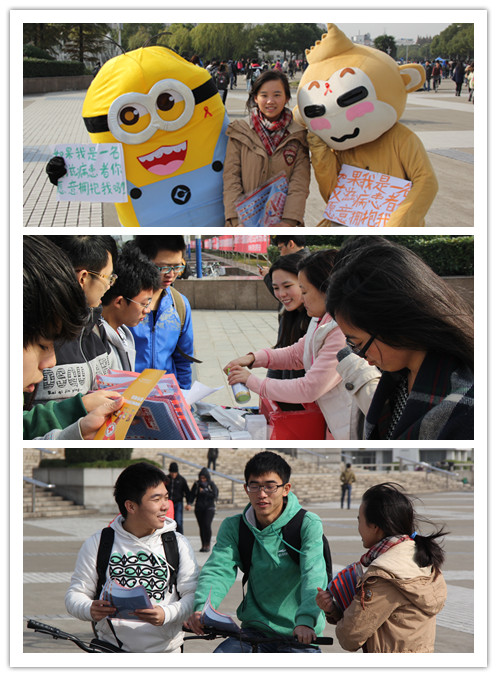 活动开始后,许多热心的同学前来咨询,有选择买下纪念品捐出爱心的,更有直接捐款表达慈善之心的同学。与上大学生的交流中,"蒲公英"团队志愿者们积极地向他们介绍和解说世界艾滋病的概况和趋势,引导着更多的同学关注艾滋,奉献爱心。同学们簇拥着渴望更加了解艾滋病相关知识的身影,在寒冷的秋冬天里蔓延出一股温暖的力量,相信这股力量会传播得越来越广。
