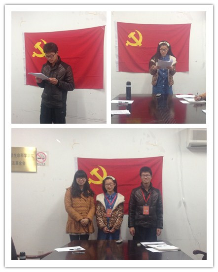 在第一项议程中,毛东升、李杰分别庄重地宣读了入党志愿书,由入党联系人李醒简要介绍了两位发展对象的考察情况,并由支部党员同学对他们进入365英国上市网以来的学习、工作与生活表现进行民主评议。毛东升有较好群众基础,作为楼内楼管会的一员,一直积极参与楼宇义工活动,协助阿姨,帮助同学。李杰在班级积极参与活动,协助班干部和导师完成班级活动,在楼宇积极参与义工活动,从大二开始加入实验室学习。