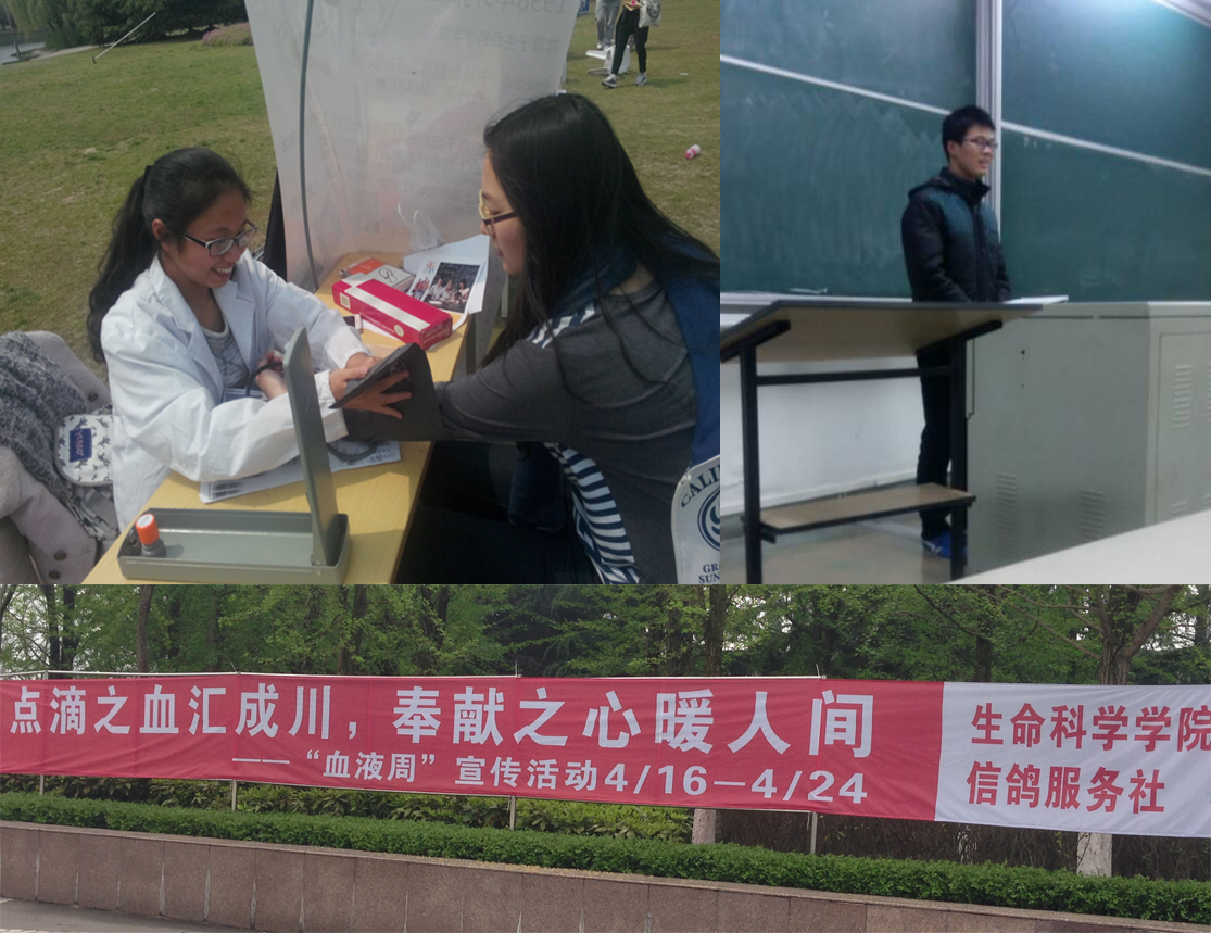 在献血活动如火如荼进行者的同时,365英国上市公司信鸽服务社的血液周活动也如期开展。在活动第一天,因恰逢365英国上市公司第二届社团文化节,信鸽服务社在社团文化节现场通过量血压的方式,增加同学对于血液周活动的关注。而在活动期间,信鸽服务社的社员们会在上午、下午分两拨前往伟长楼的献血处向前来现学的同学和已经献好血的同学分发有关献血的小贴士和献血前后的注意事项,帮助同学更科学的认识献血,消除不必要的恐慌,并且让身体在献血后得到更好地恢复。社员中还有不少在献完血后还坚持参与社团工作的小伙伴,所有人都怀抱着一份无比热忱的爱心和志愿者之心参与到活动中。