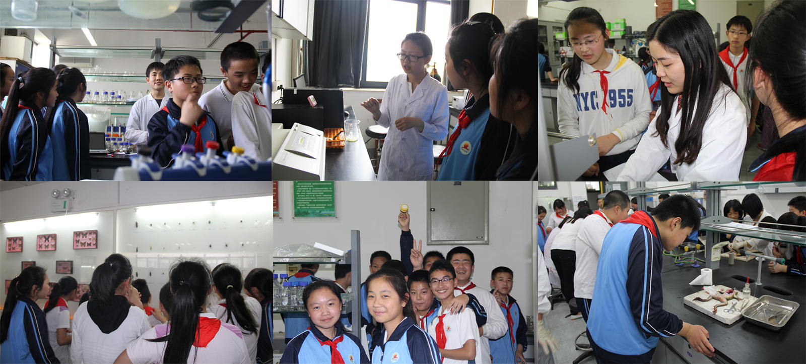 为了本次科普活动,蒲公英团队认真准备,联系了112、113李艳利老师实验室的刘小敏、325宋任涛老师实验室的刘燕、436高娟老师实验室的韩立以及520、521朱小立老师实验室的欧明艳作几位同学作为本次科普活动的实验室负责人,为来自大场中学的150名中学生介绍实验室情况。而蒲公英队员分为五组,各带领一个班级按照事先设定的参观路线依次参观实验室和标本馆。