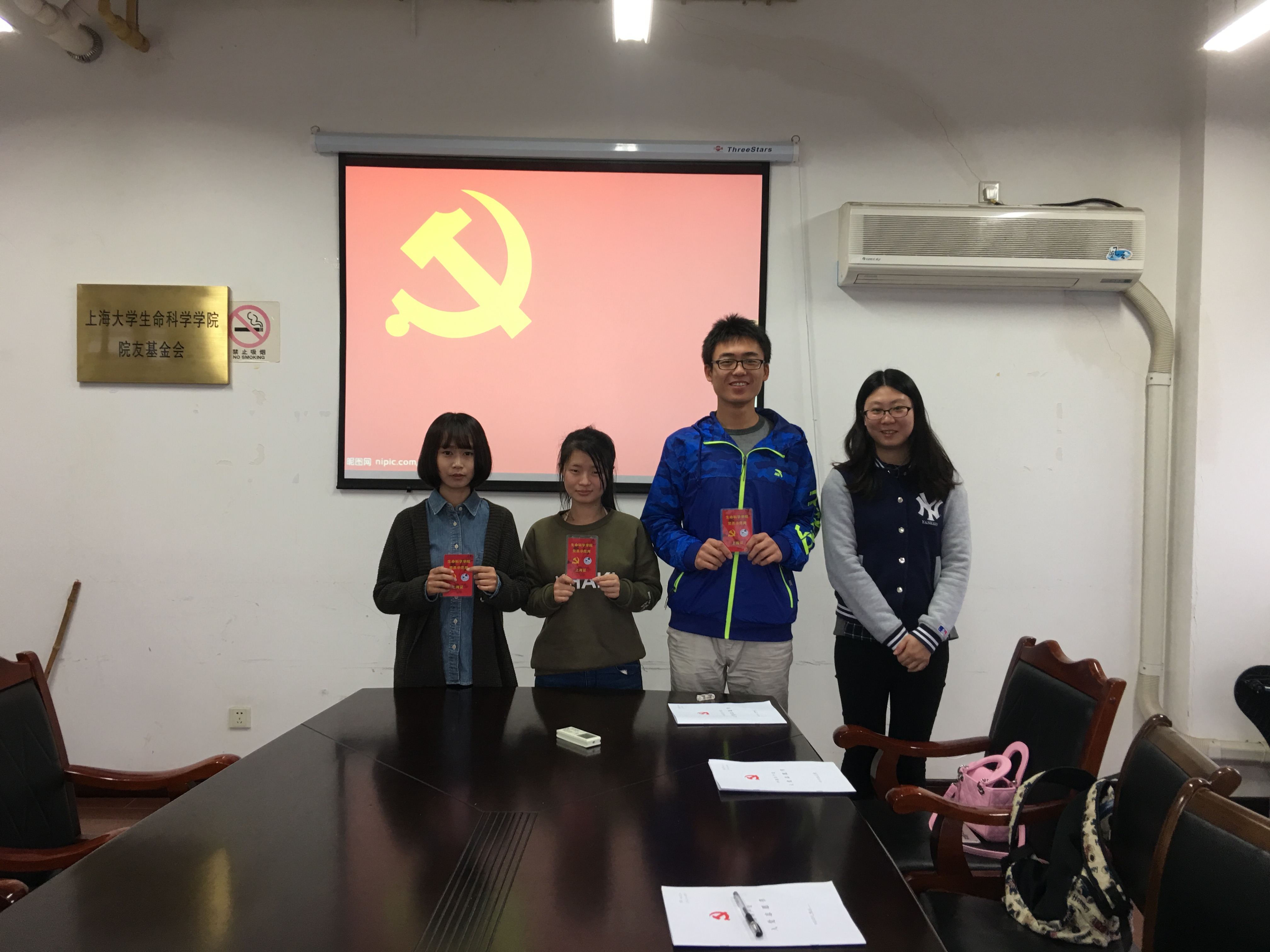 2015年11月13日下午2点,生命学院本科生第一党支部在生命大楼803会议室举行了11月组织生活会。此次组织生活包含两项内容,一是举行第三季度党员发展流程,二是积极贯彻学校组织部学习孙晋良院士优秀事迹、践行"三严三实"的要求,组织所有党员及2名入党积极分子一起观看了专题片《境界》。