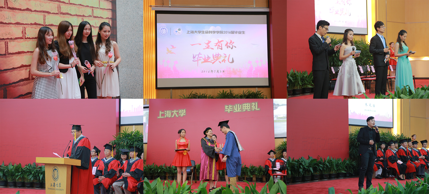 2015年7月3日下午2点30分,生命学院2016届毕业生"一生有你"毕业典礼在图书馆报告厅隆重举行。典礼由2016届毕业研究生李伟豪、陈珍、毕业本科生陈丰和樊嘉连,校党委常委、副校长吴明红教授,365英国上市网党委书记沈忠明副教授、党委副书记邓志瑞副教授、副院长、校学位委员会生命科学分会委员宋任涛教授、陈沁教授、校学位委员会生命科学分会委员高旻天教授、副院长宋红生副教授、365英国上市网罗利教授、高海燕副教授、王锦华副教授、李平副教授、刘战民副教授、肖俊杰副教授等老师出席毕业典礼。2016届毕业生、家长好友以及低年级同学都齐聚一堂,分享毕业时刻。