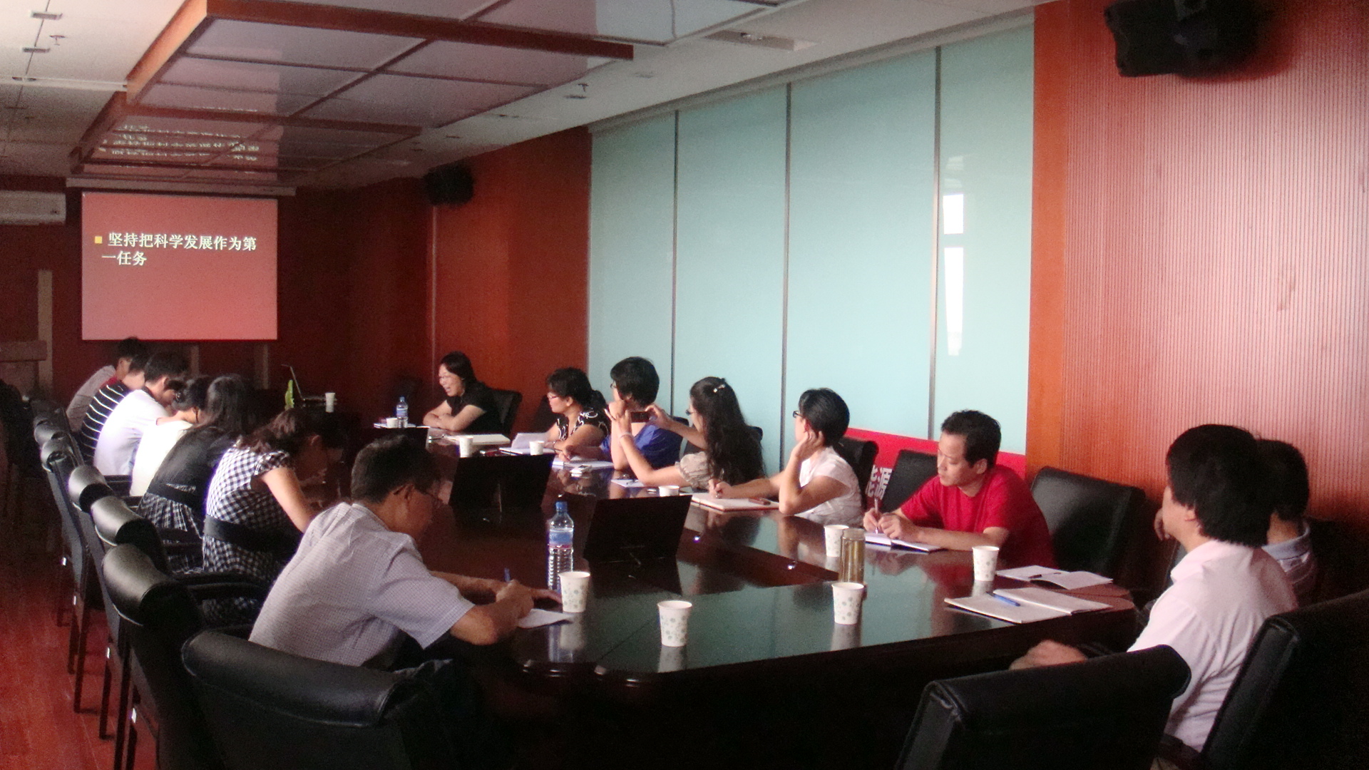 会上学院党总支书记李红组织大家学习了7月8日发表在人民日报题为"以务实精神落实科学发展观"文章,并就此文引发的思考和与会教师分享了她的认识。她强调:工作中我们要坚持"四个第一",推动学院新的发展。即:坚持"理论武装作为第一要求",我们要保持理论上的清醒和政治上的坚定,准确把握科学发展观的科学内涵、精神实质和根本要求,取得工作实效;坚持"科学发展作为第一任务",结合院情和工作实际,推进学院各方面的发展;坚持"维护稳定作为第一责任",以学生为本,教师为本,通过建立长效机制保证学院的安全稳定工作;坚持"改善民生作为第一标准",问政于民、问需于民、问计于民,多办顺民意、解民忧、增民利的实事,做到让师生满意。