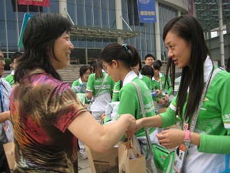 最后,李老师鼓励同学们在未来几天的工作中,继续以饱满的热情和无私的精神,为世博会贡献自己的力量,用实际行动展示生命学院的风采!同学们也向老师们赠送了一枚代表志愿者最高荣誉的金质徽章,并保证他们一定会坚守自己的岗位,不辱使命,传播世博理念,践行志愿精神,锻炼意志品质,为世博加油,为生命喝彩。