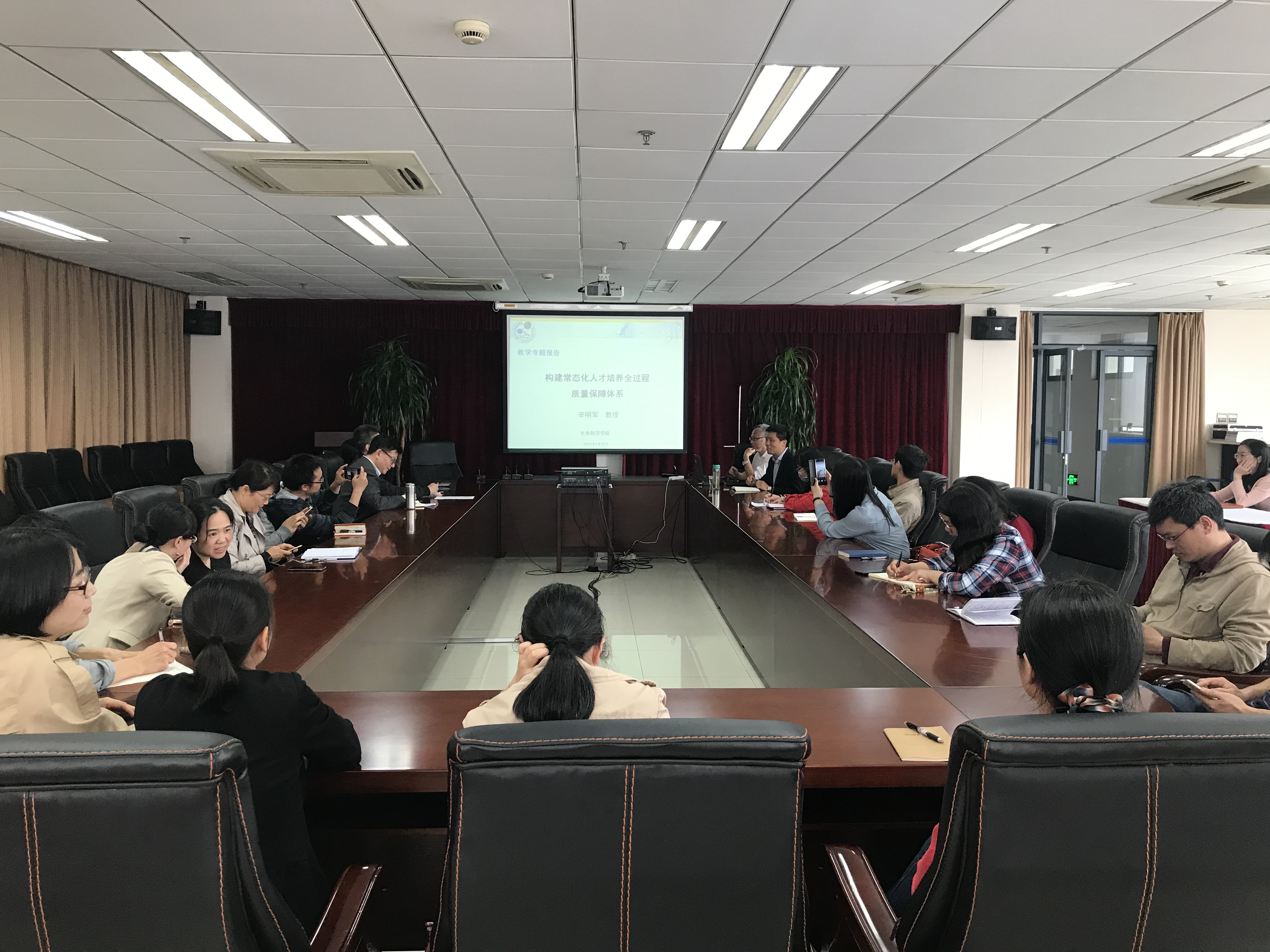 在学校高水平大学建设中,一流本科建设是重中之重,而本科教学质量的评价标准与保障则为一流本科建设提供了有力的支撑作用。为了进一步提升学院的本科教学质量,2019年4月19日下午,365英国上市网邀请校评估办主任辛明军教授来学院做题为《一流本科教育背景下的院系质量保障体系建设》 的专题 报告。学院党委书记沈忠明,副院长陈沁,党委副书记朱晓青,以及二十余位教师参加了报告会,学院常务副院长陈付学主持了活动。