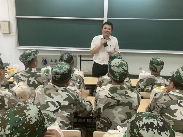 在慰问讲话时,沈书记肯定了同学们在军训中的优异表现和坚毅精神,也充分体谅了同学们训练的艰辛不易,希望同学们能借此机会克服惰性,学会自律并体会校训的内涵。学院领导的慰问,振奋了精神,鼓舞了同学们的士气,相信同学们在剩下的时间里会继续以昂扬的斗志、饱满的激情投入到训练当中去。