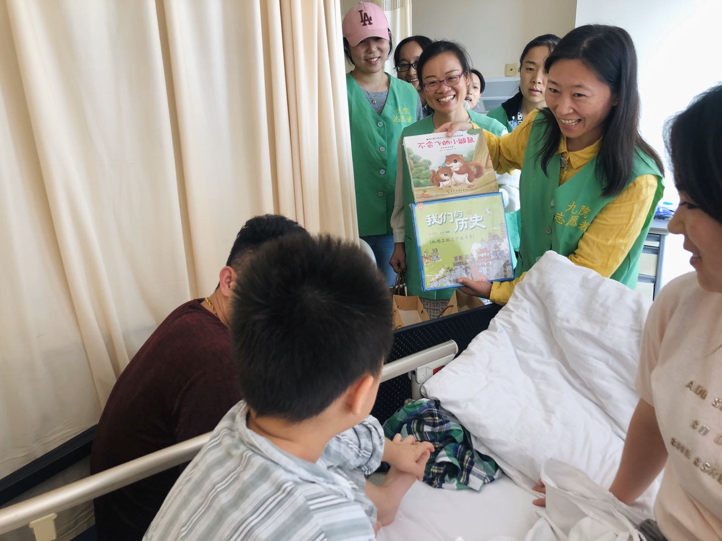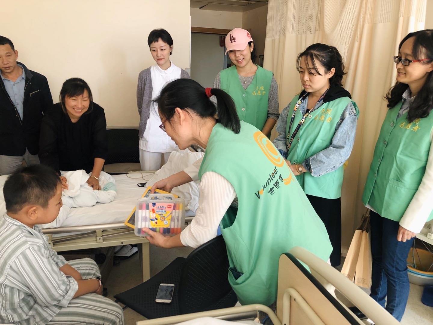 当天下午,在值班医生的带领下,教师党员走进病房与小朋友聊天,与家长交流孩子的病情,将准备好的礼物送到每一位孩子的手中,并祝愿他们早日康复、健康成长。
