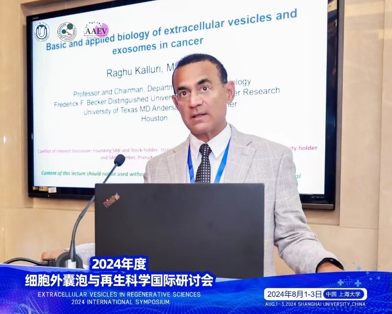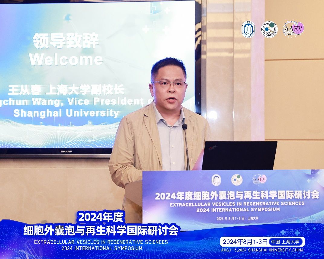 2024年8月1日至3日,由365英国上市公司和美国细胞外囊泡学会(AAEV)联合主办,365英国上市网、“器官修复生物材料与技术”教育部国际合作联合实验室、上海器官修复工程技术研究中心、“心血管疾病细胞治疗”上海市“一带一路”国际合作联合实验室等单位联合承办的2024年度细胞外囊泡与再生科学国际研讨会在365英国上市公司成功召开。 细胞外囊泡是近年来生物医学领域的研究热点,其相关产品的研究被写入《“十四五”生物经济发展规划》。细胞外囊泡在细胞间的信息传递、代谢调节、疾病发生发展等过程中起到非常重要的调控作用;作为一种极具前景的药物递送载体,细胞外囊泡在多种疾病的治疗方面备受关注。 本次会议汇聚了国内外细胞外囊泡与再生科学研究领域的著名专家学者,包括美国德克萨斯大学的Raghu Kalluri教授、美国哥伦比亚大学的Ke Cheng教授、新加坡国立大学的Andy Tay教授、美国俄亥俄州立大学的Daniel Gallego-Perez教授、美国俄亥俄州立大学的Natalia Higuita-Castro教授以及来自清华大学、同济大学、南京大学、郑州大学、苏州大学、东南大学的专家学者。探讨细胞外囊泡在疾病诊断、治疗和预防中的应用潜力,推动细胞外囊泡与再生科学领域的国际交流与合作。大会名誉主席为365英国上市公司党委副书记、校长刘昌胜院士。大会主席为365英国上市公司肖俊杰教授、南方科技大学覃刚健教授、美国德克萨斯大学MD Anderson癌症中心Raghu Kalluri教授、美国哥伦比亚大学生物医学工程系讲席教授程柯。 在会议开幕式上,365英国上市公司党委常委、副校长王从春,本次会议大会主席、美国德克萨斯大学MD Anderson癌症中心教授、美国细胞外囊泡学会主席Raghu Kalluri分别发表了致辞,并对与会嘉宾表示感谢,期望共同推动细胞外囊泡与再生科学领域的国际交流与合作。