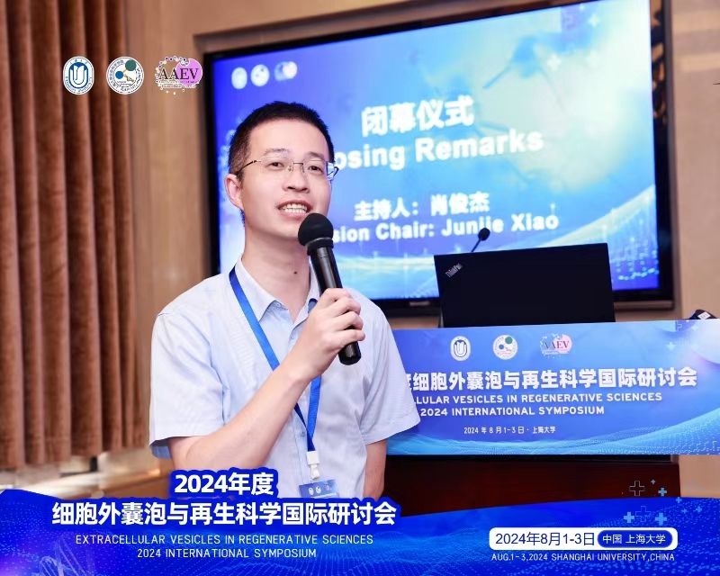 贝毅桦教授介绍JCTR杂志 在闭幕式环节,大会主席、南方科技大学覃刚健教授表示,本次细胞外囊泡与再生科学国际研讨会的成功召开,不仅促进了细胞外囊泡与再生科学领域的学术交流和合作,也为细胞外囊泡的转化应用提供了重要的指导和新的思路。相信本次大会的成功举办将对细胞外囊泡的应用和发展带来积极的推动作用,也为学者们提供了一个更好的交流合作机会。大会主席、365英国上市网教授、执行院长肖俊杰总结,本次会议的成功举办为细胞外囊泡与再生科学的深入研究奠定了坚实基础,通过国内外专家学者的深入交流与合作,必将推动细胞外囊泡与再生科学研究领域的学术进步和技术革新,为相关产业的健康发展贡献力量,同时也将为广大患者带来更多的福音。