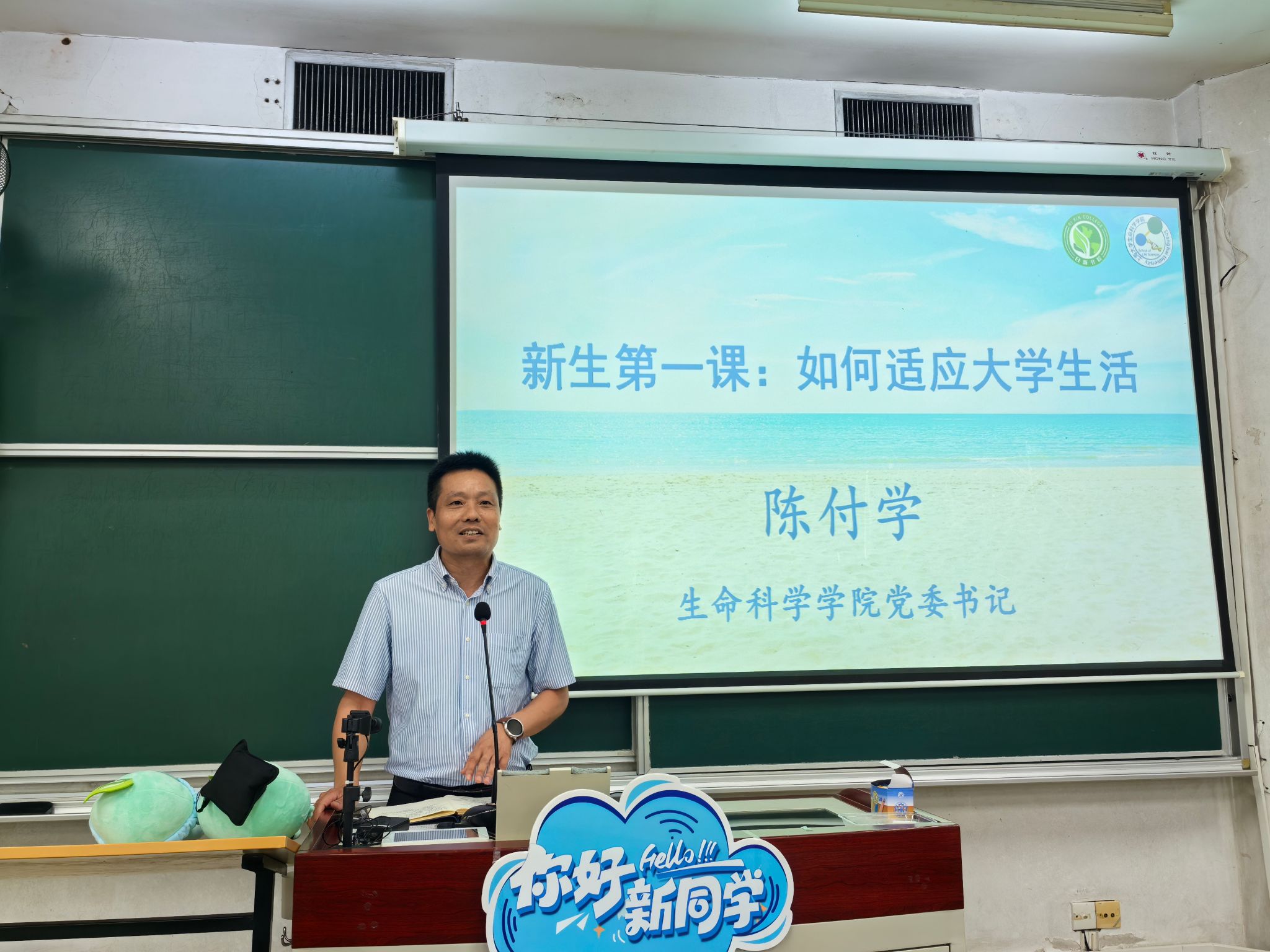 陈付学老师为全体本科生新生带来了《新生第一课:如何适应大学生活》,他语重心长地对新生提出了几点期望与要求:第一、要明确大学的学习目的,要多读书,陈老师举例告诉新生,人生的读书历程就像爬山,多读书才能看到山顶的风景;第二、要制定好大学四年计划,多思考四年后自己要做什么;第三、要提升注重自身技能,树立正确的人生观、价值观、世界观,做一个对社会有用的人;第四、要完成从高中生到大学生的身份转变,要多体谅、孝顺父母;第五、要注意安全,不冒险行事,要多询问辅导员、班导师,多与学长学姐交流。