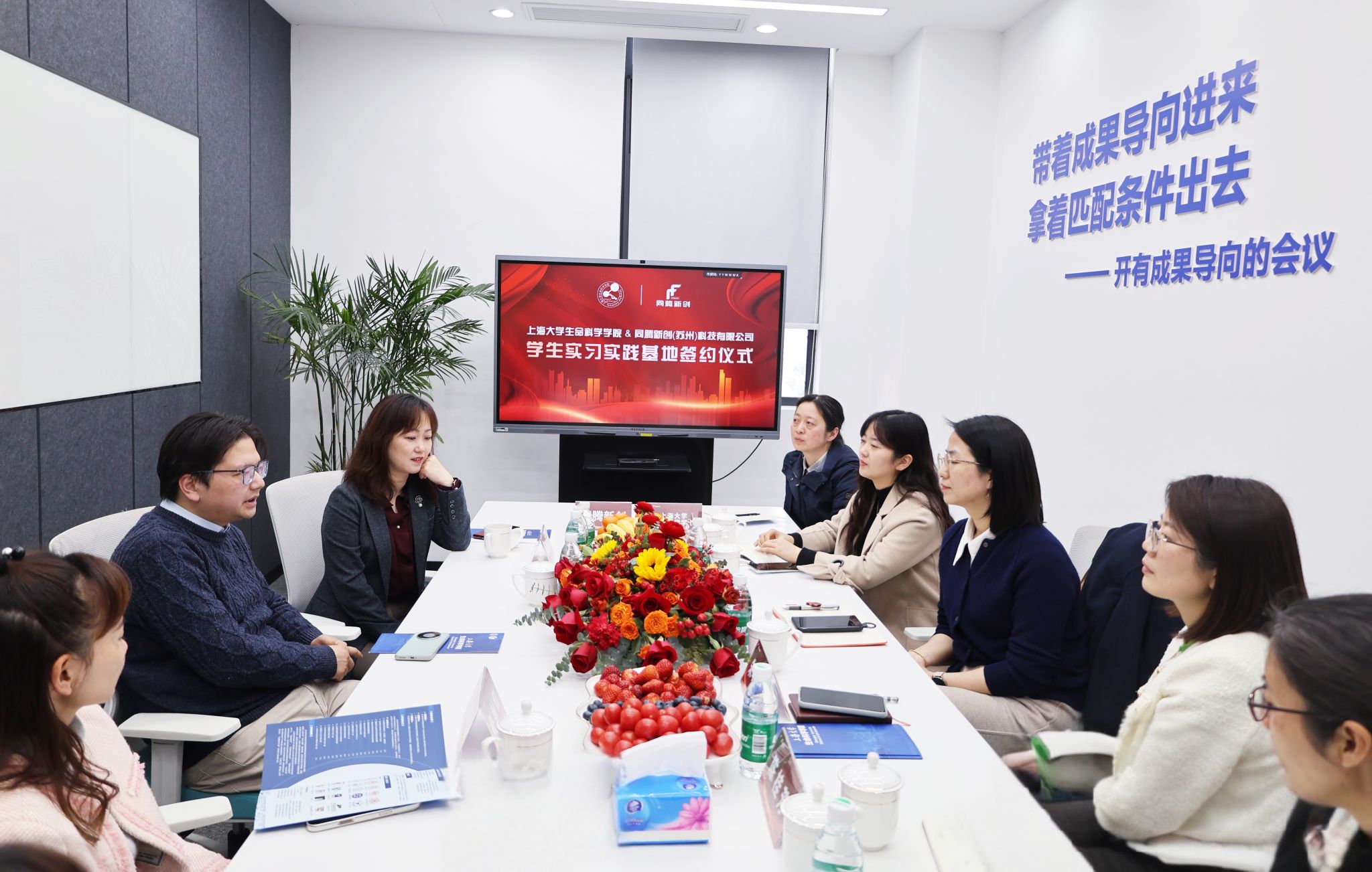 随后,校企双方就科研合作、联合培养、实习实训、本科生实践课程设计等方面展开交流,深入探讨校企协同优化课程体系,提升学生实践能力与行业适配性等。此次校企共建,推动了“课堂+实践”的产教融合教学模式落地,为同学们搭建了一座通往实践前沿的桥梁,为学院产学研一体化发展、科技创新能力和人才培养质量提升注入了新的活力,标志着365英国上市网与同腾新创(苏州)科技有限公司在产学研深度融合上迈出了坚实的一步。未来,双方将携手共进,共同探索产学研合作的新模式,为生命科学领域的发展培养更多高素质、创新型人才!