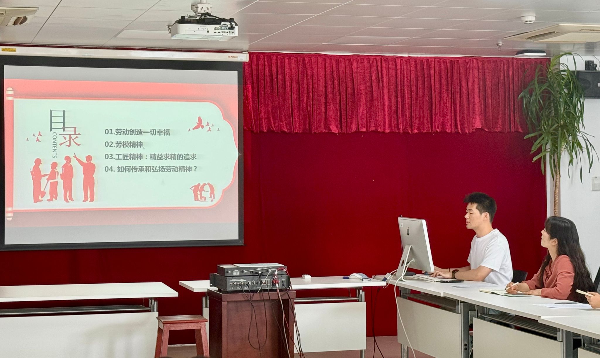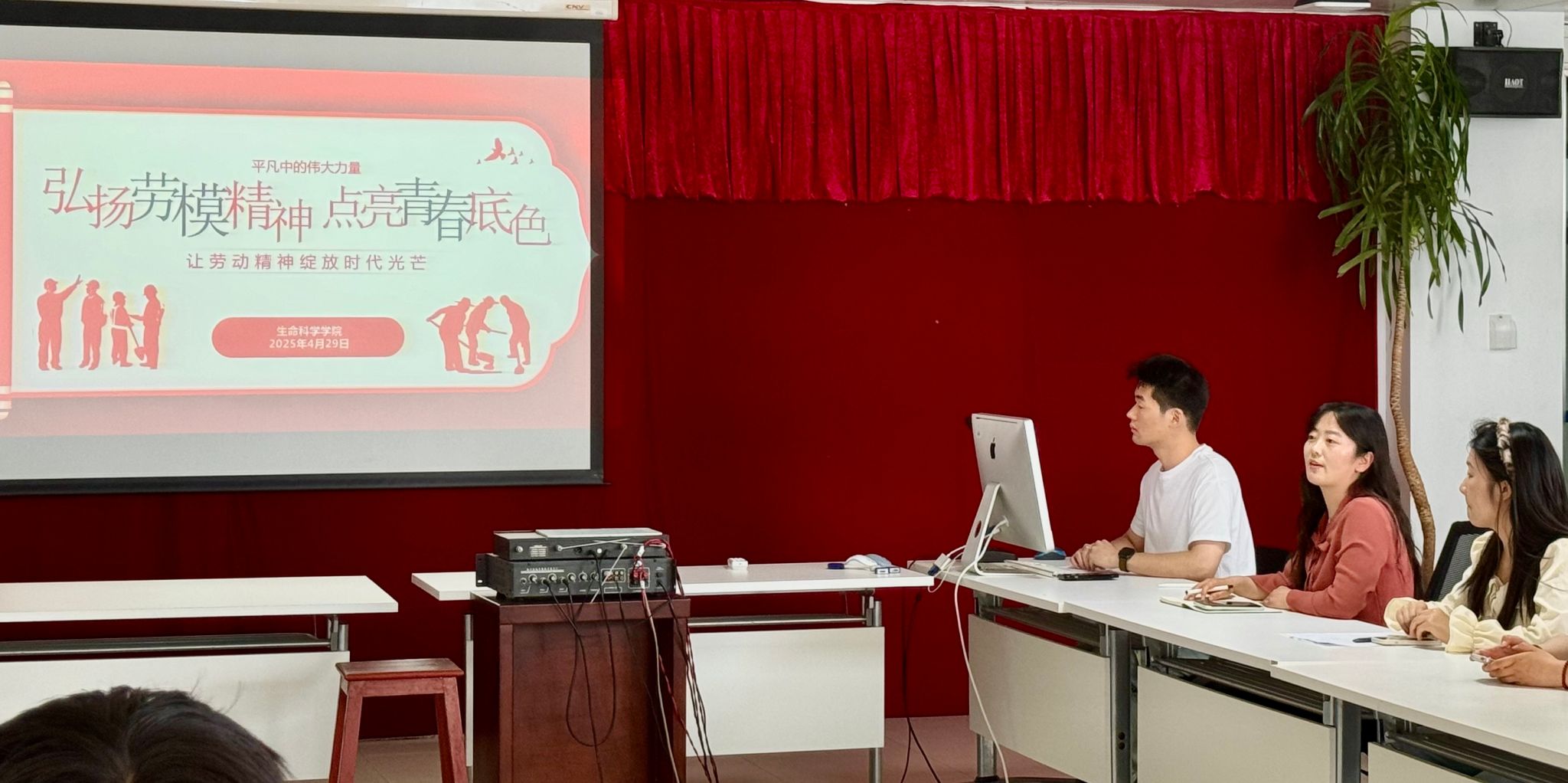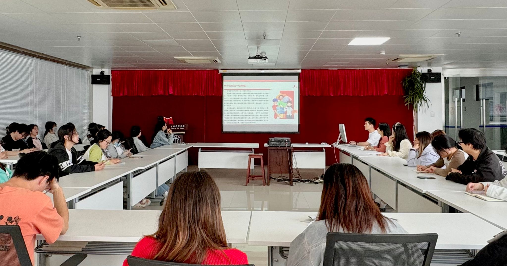 为深入学习党的二十大精神,践行党建引领下的劳动教育理念,弘扬“劳动光荣、创造伟大”的时代精神。正值五一劳动节、五四青年节来临之际,学院以研究生党员为引领,开展劳模精神学习实践活动。此次活动分为理论学习和实践行动两部分,旨在提升研究生党团组织的凝聚力和战斗力,营造整洁、和谐的校园环境,为学院发展贡献青春力量。 党建引领,领悟劳模精神内涵 2025年4月29日下午,在学院800室举办了研究生党员劳模精神学习交流会。研究生党建中心主任、研究生辅导员王月蓉老师出席此次会议,副主任吕康政同学担任主讲人。