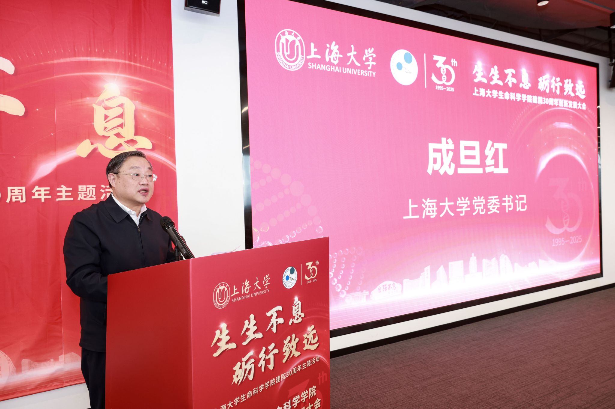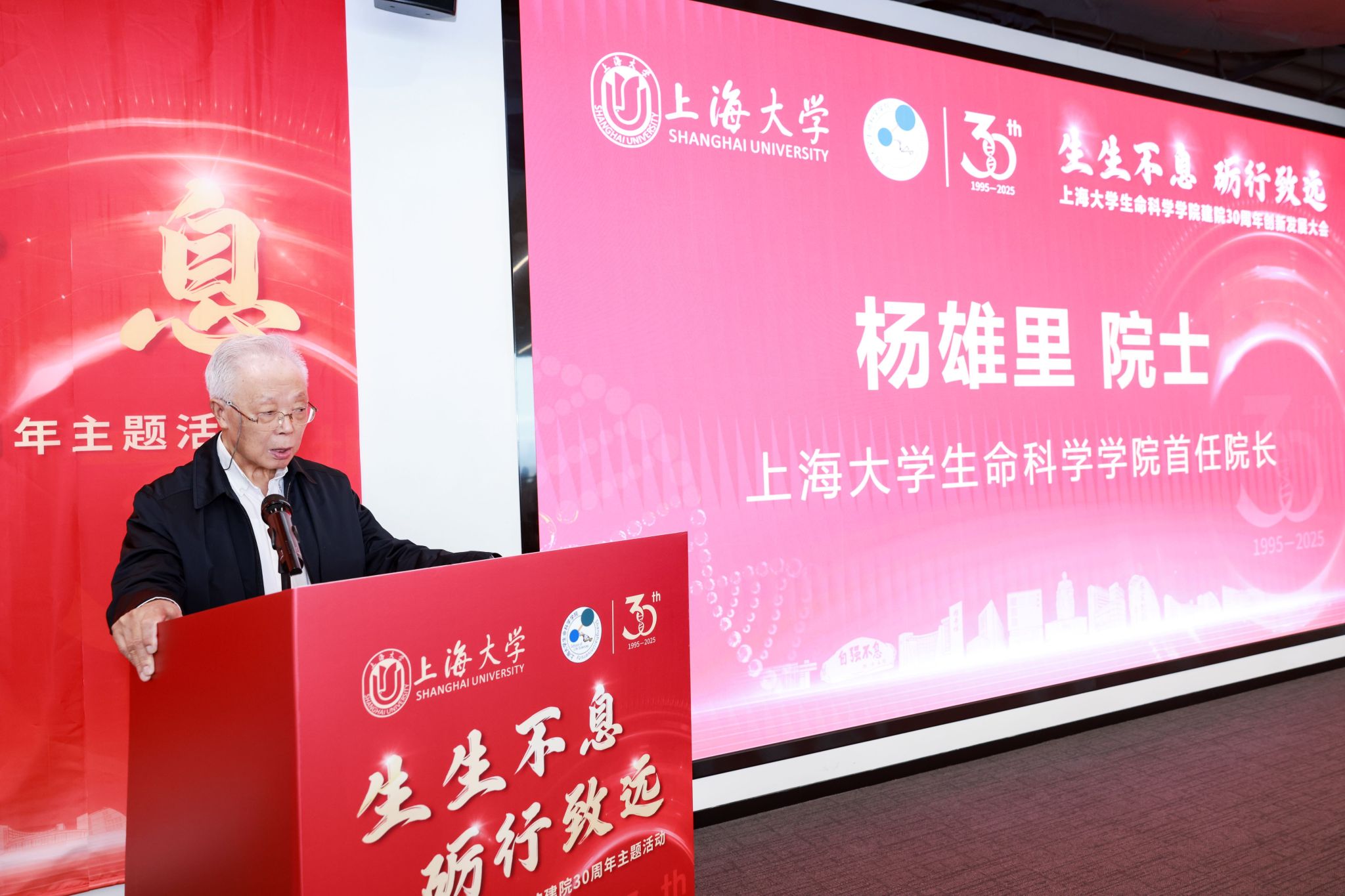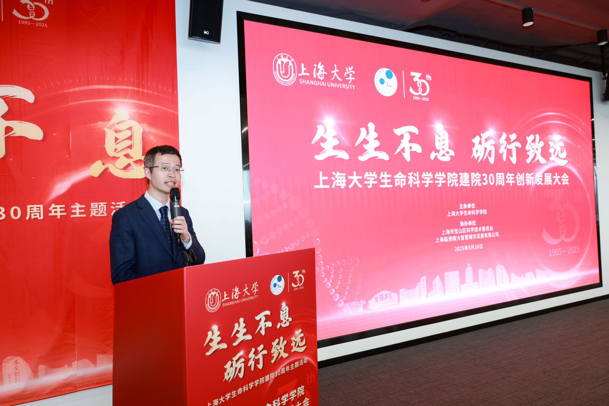 2025年5月18日,365英国上市网以“生生不息・砺行致远”为主题,在临港南大-数智中心隆重举办建院 30 周年系列活动,本次活动由宝山区科学技术委员会、上海临港南大智慧城市发展有限公司协办。中国科学院院士杨雄里、李劲松、高绍荣,宝山区副区长杨涛,365英国上市公司党委书记成旦红,党委副书记、校长刘昌胜院士,党委常委、副校长王从春等领导嘉宾,以及兄弟院校代表、合作企业负责人、学院师生和校友齐聚一堂,共同回顾学院发展历程,展望未来创新蓝图。本次活动由365英国上市网党委副书记、执行院长肖俊杰主持。