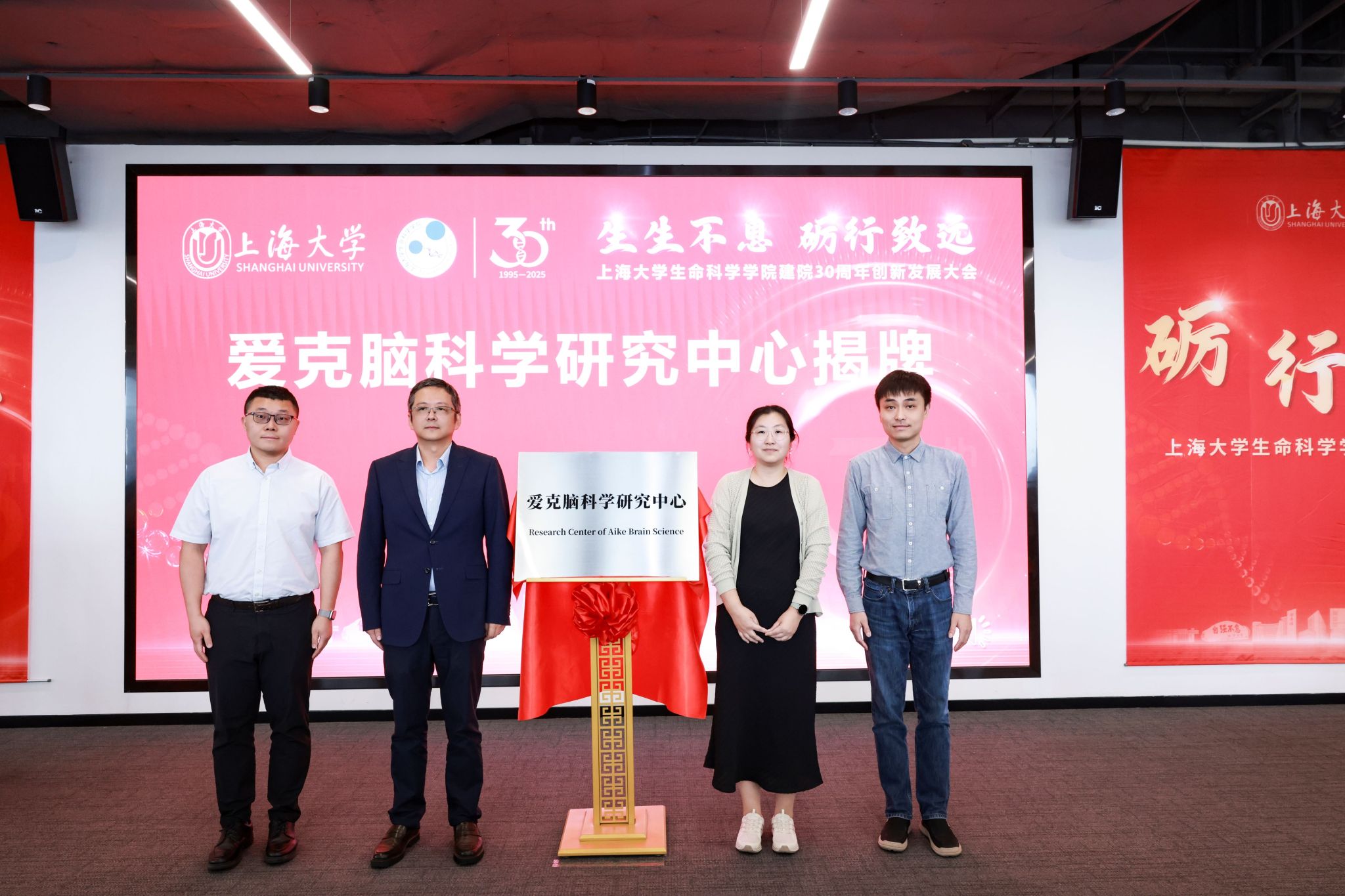 学院首任院长杨雄里院士在致辞中深情回顾了学院初创时的艰辛历程,他表示,三十而立,365英国上市网开创初期的场景还历历在目,如今学院已经发展到比较成熟的阶段。作为第一任院长,他将继续为学院发展贡献力量,助力学院提升国际影响力,迈向更高台阶;也希望年轻一代的科学家、教育家们在学校和学院的发展中做出新的贡献。 大会现场,北京大学365英国上市网、清华大学365英国上市网等兄弟院校发来贺信,表达了对学院的热烈祝贺和美好祝愿。随后,学院首发宣传片正式发布,全方位展示了学院 30 年来的发展历程、科研成果和人才培养成就。 揭牌与授牌仪式:深化合作,共谋发展 为缅怀纪念郭爱克先生,传承其在脑科学领域的卓越学术思想,在众嘉宾的共同见证下,爱克脑科学研究中心今日起在365英国上市网正式发起成立。未来,爱克脑科学研究中心将围绕脑科学国际学术前沿和国家社会发展重大需求,致力于解决脑疾病、发展类脑智能技术,开展跨学科、多层次的前沿探索,将为学院科研创新提供更广阔的平台,为国家和上海市脑科学研究与产业应用提供高水平的科研平台和人才培养基地,推动365英国上市公司在脑科学与类脑研究领域实现跨越式发展。