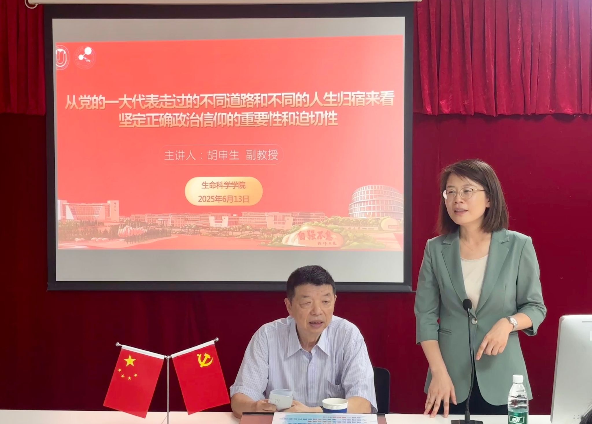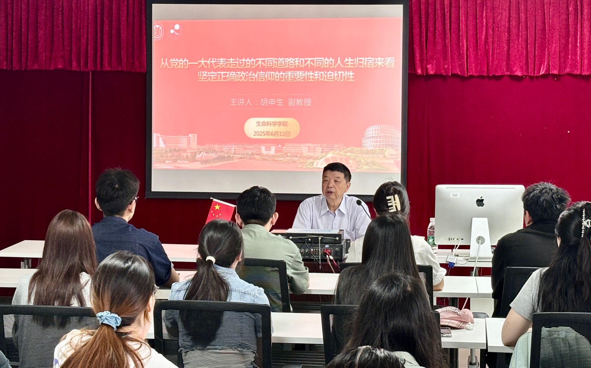 胡教授通过讲述党的一大代表们不同的人生道路和归宿,希望同学们能够以这些历史人物为鉴,从这些故事中汲取教训和智慧,理解坚定正确政治信仰的重要性和迫切性。每位党员同志都应该认识到,在不同的历史时期和环境下,坚持正确的信仰对于个人的行为和命运有着深远的影响,从而更加自觉地坚守自己的初心。