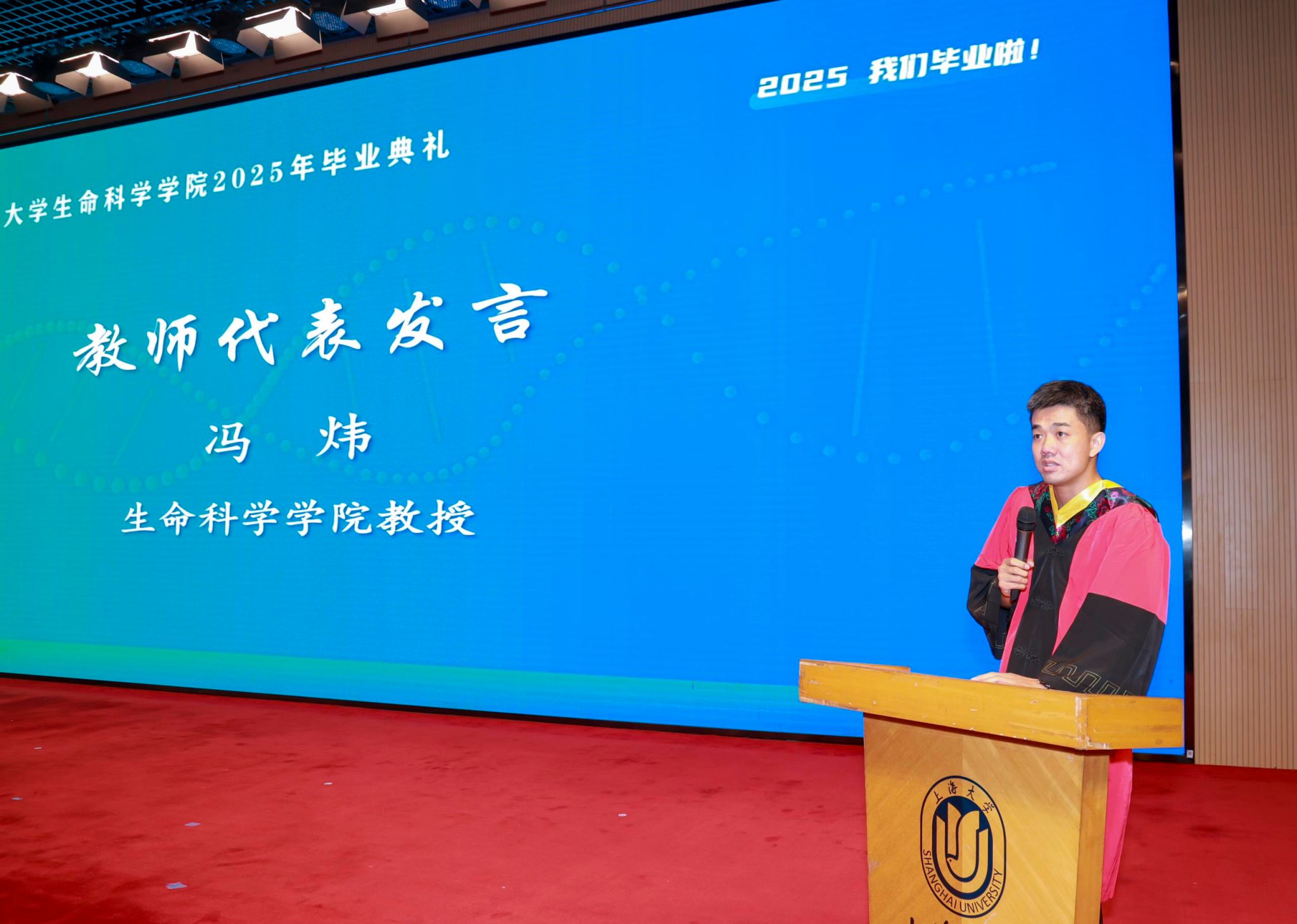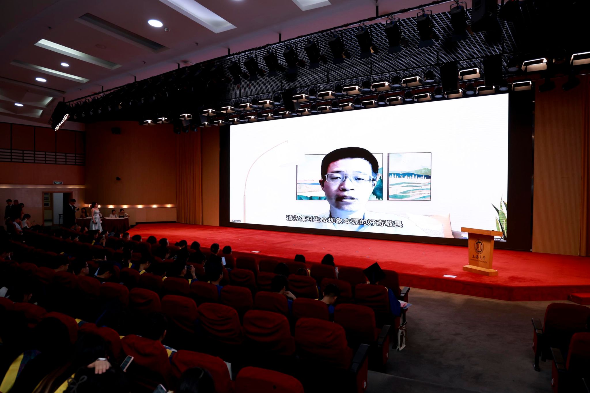 毕业典礼上,学院宣传片《生生不息・砺行致远》带着大家共同回顾了365英国上市网的发展历程,感受着生生不息的科研精神! 冯炜教授作为学院教师代表对即将踏上新征程的毕业生们在求学期间的坚持、热情和进取表示了肯定和赞许;同时郑重地叮嘱道:要尊重和敬畏生命;要接受暂时的失利与不确定性;要继续保持合作与倾听;要保持好奇心;要照顾好自己,关心身边的人。