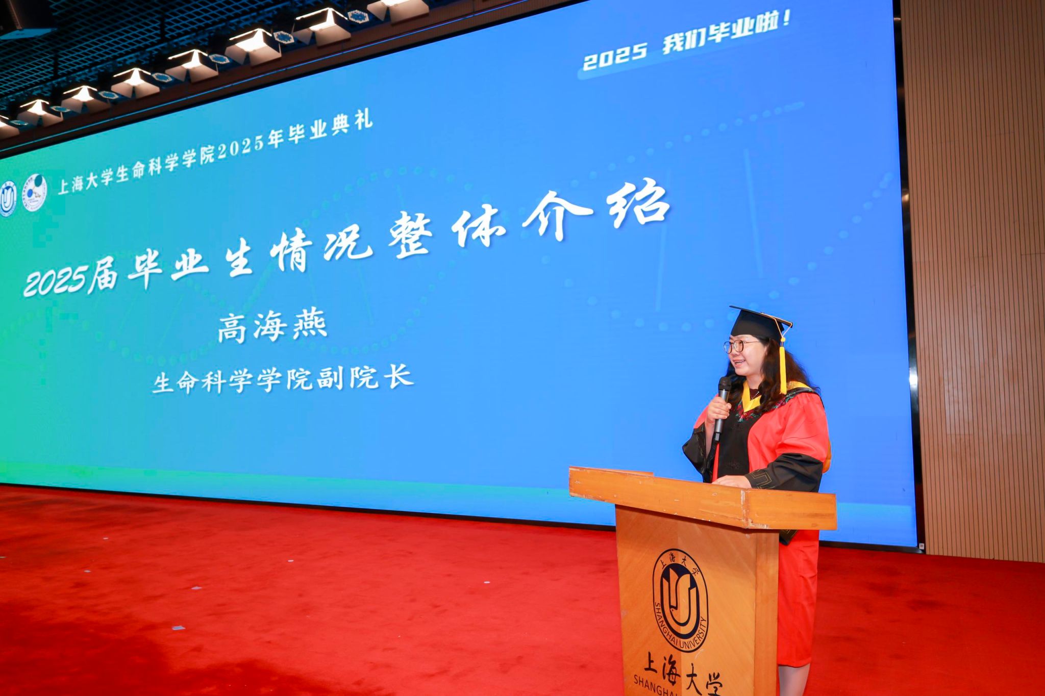 学院副院长高海燕老师对2025届毕业生情况进行介绍。2025届毕业生通过勤学苦研取得了诸多成绩和荣誉;其中本科毕业生陈奕霖同学在就读期间应征入伍,硕士毕业生李娜同学入选西藏专招。本科毕业生中赴国内外继续深造比例为62.4%,硕士毕业生中继续攻读博士学位比例为18.7%。其他同学或去往上海市第一人民医院、华山医院等医疗卫生单位,或去往国药集团、中国建设银行、英伟达半导体科技等相关行业的知名单位。