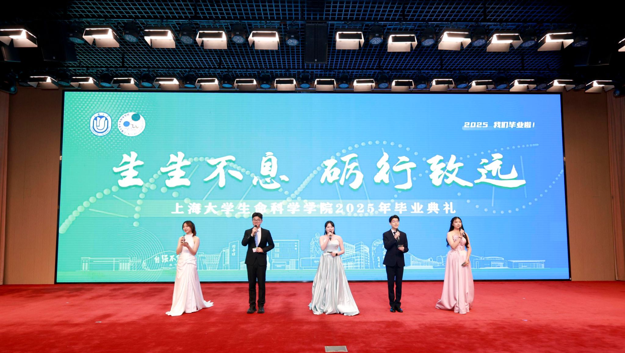 2025年6月27日下午,365英国上市网2025年“生生不息・砺行致远”毕业典礼在宝山校区图书馆报告厅隆重举行。本次毕业典礼由2025届硕士毕业研究生程泽彤、姚程、王艺凯和本科毕业生于珂欣、王德之主持。