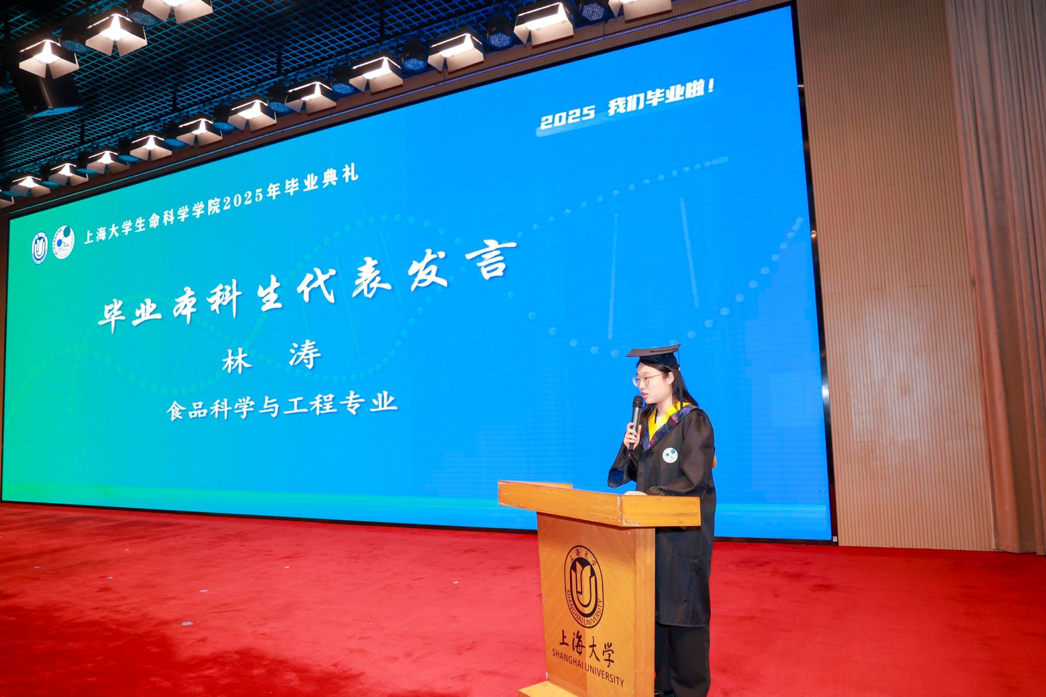 毕业研究生代表李晨阳同学代表全体毕业生向为我们成长保驾护航的学院领导和老师们表达最由衷的感谢,并分享了他在求学之路上从青涩到成熟转变的经历。毕业本科生代表林涛同学满怀对未来的热情,分享了大学四年的学习生活经历,并坚定地表示在往后的人生旅程中将继续怀揣着这份热情不断学习。