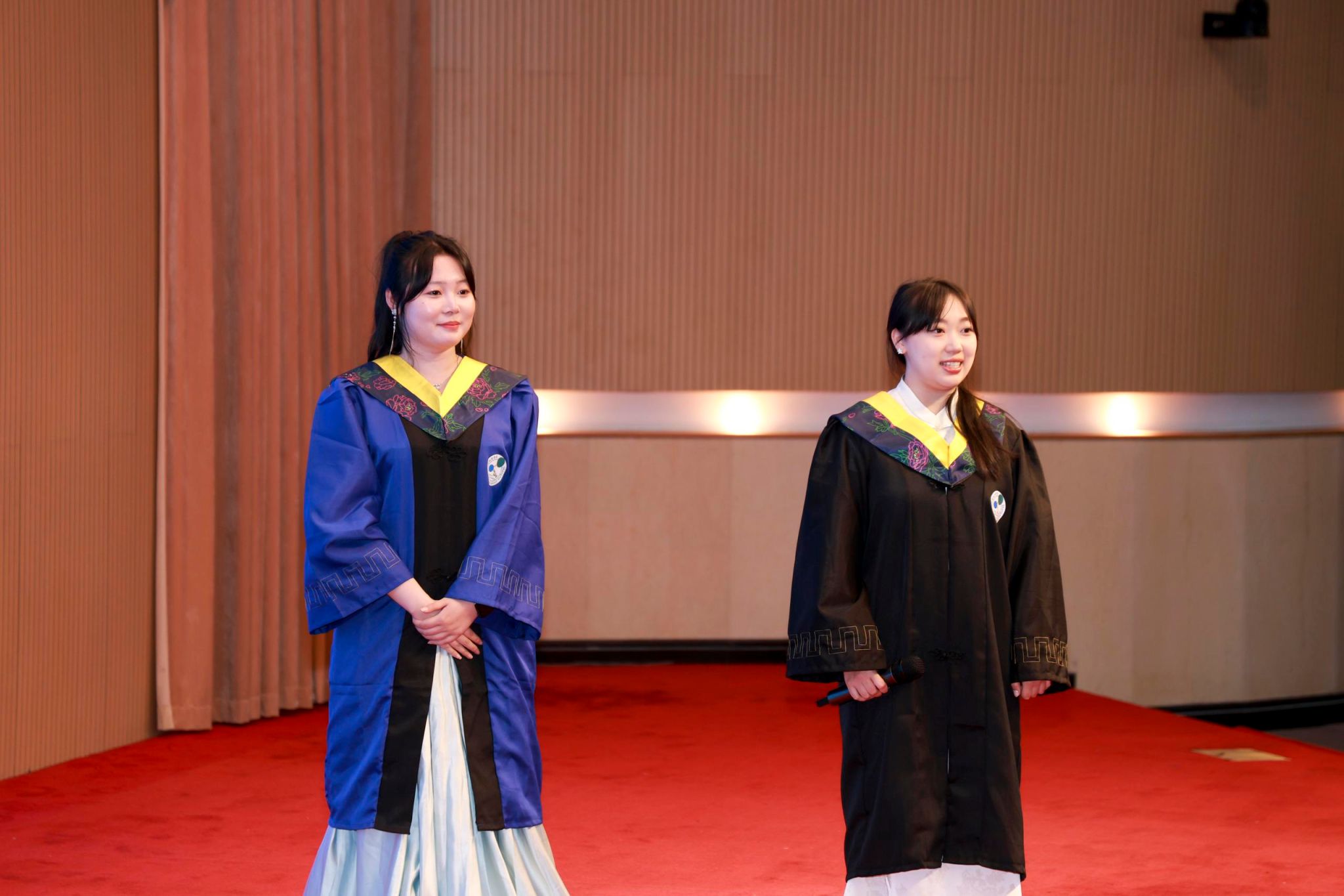 研究生代表闫家宝带来励志歌曲《山脚》,本科生代表何邓久久带来青春洋溢的歌曲《小镇姑娘》,他们以歌声传递祝福,唱出毕业生们年少的坚持与青春的活力。