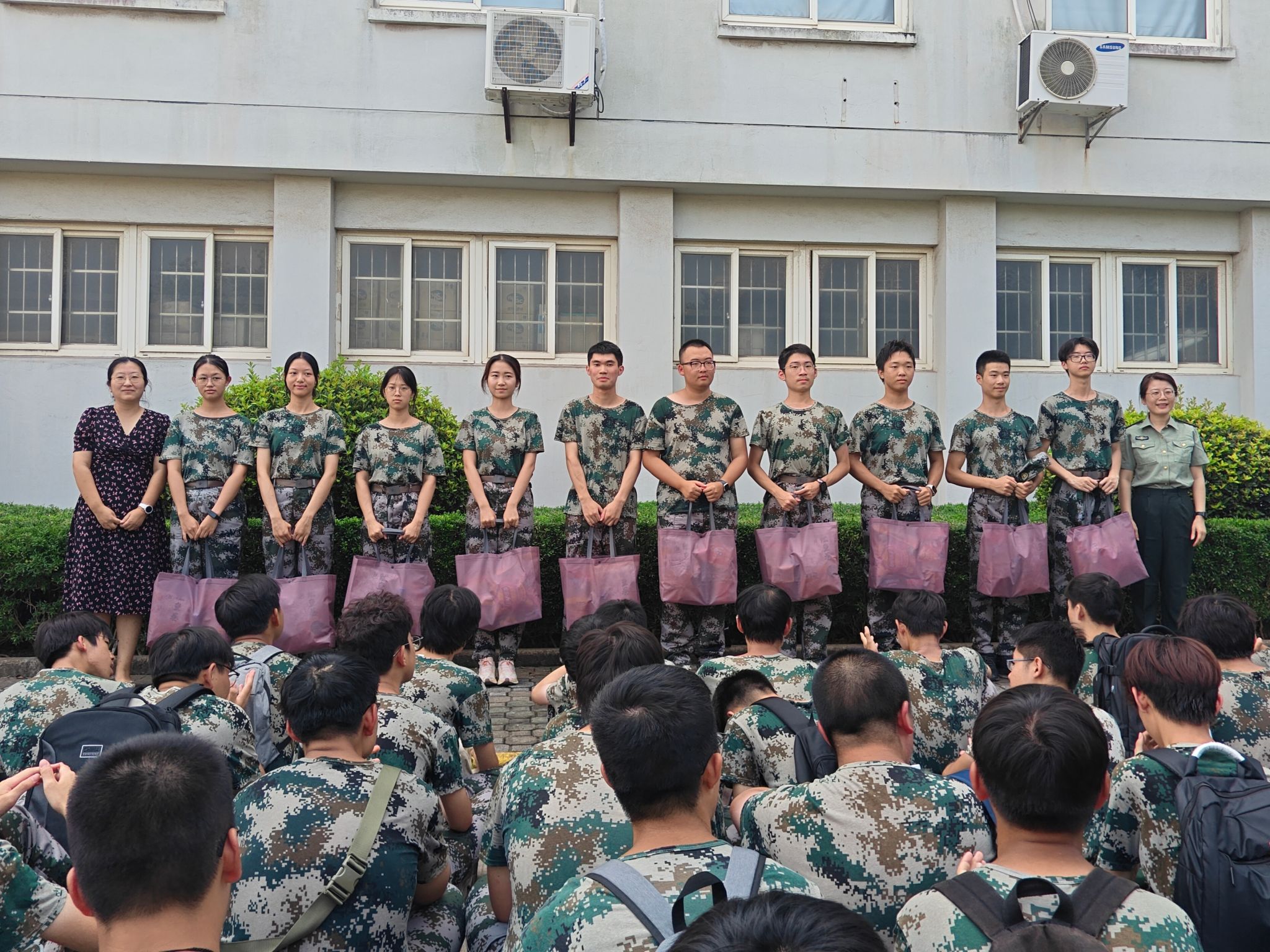 一份份承载着学院深情厚谊的慰问品,在炎炎夏日中被亲手送至军训一线。讲话结束后,肖院长与教官们亲切握手,对他们顶着酷暑辛勤指导表示感谢。随后学院领导将慰问品逐一送到了带训教官、指导员老师、连队导生和参训学生代表的手中,全场响起了热烈的掌声。与此同时,在场的每一位参训学生也都收到了学院的专属军训慰问礼包,将这份温暖与关怀传递到了训练场的每一个角落。