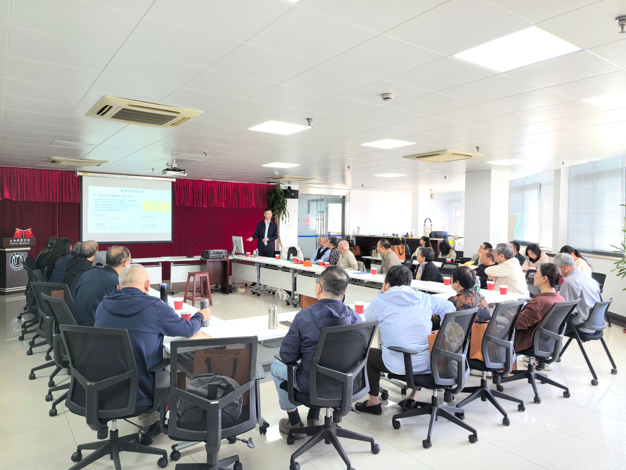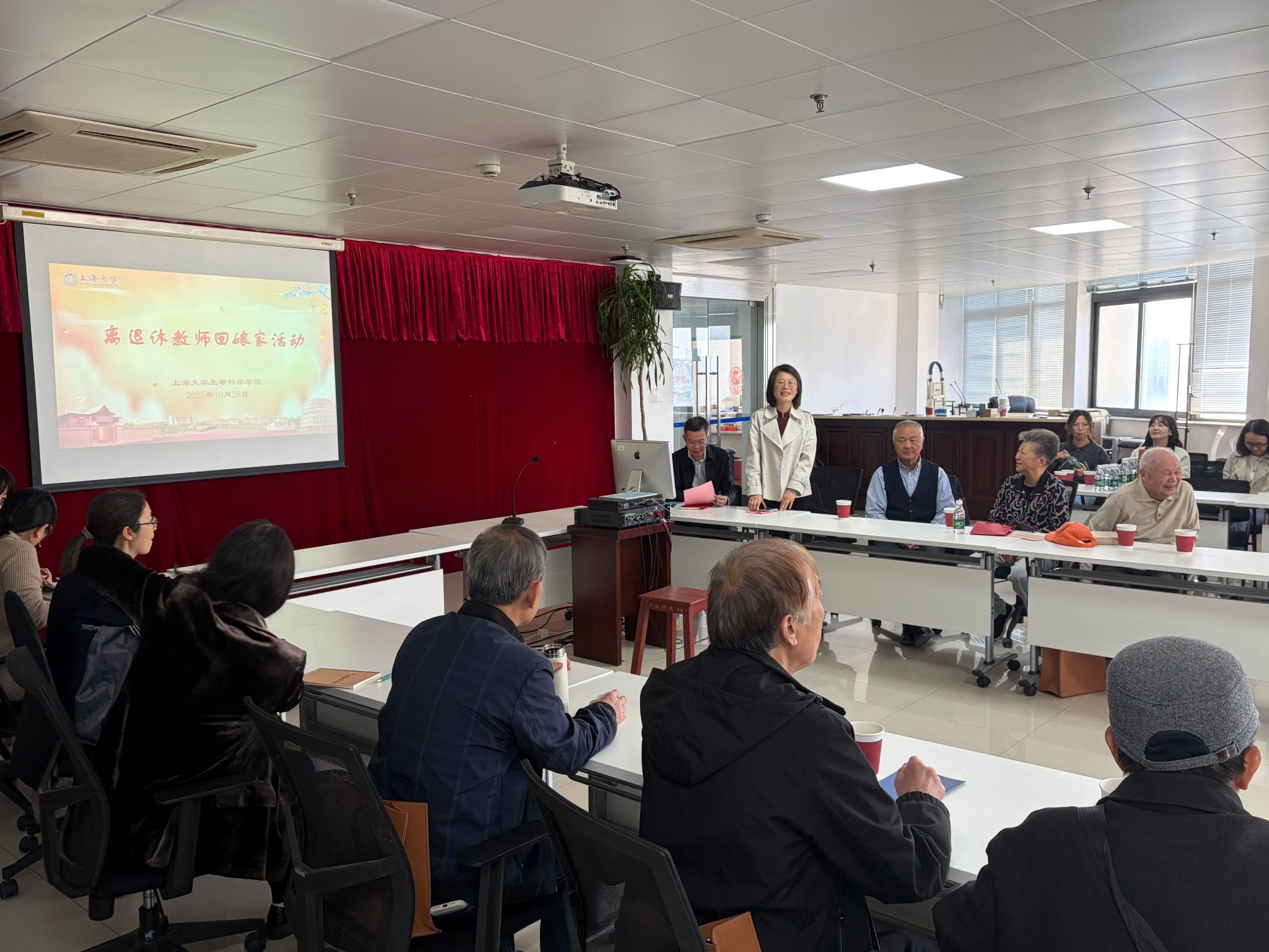 10月28日上午,温馨的离退休老教师“回娘家”活动在学院800会议室隆重举行。学院党政领导班子、教工党支部书记及青年教师代表共同参与,与老教师们欢聚一堂,共忆峥嵘岁月,共话学院发展。活动由学院党委副书记、副院长朱晓青主持。