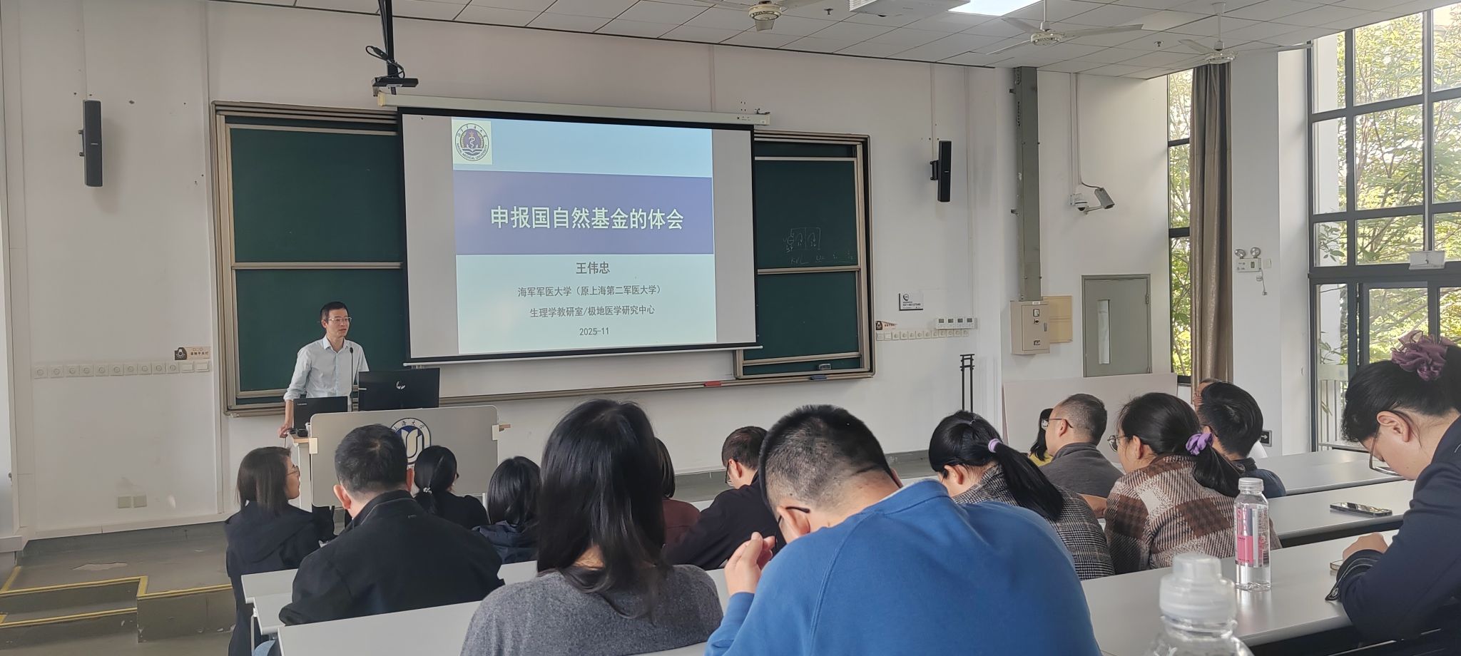 在精彩的专题报告环节中,海军军医大学王伟忠教授做了题为《申报国自然基金的体会》的专题报告。王教授结合自身丰富的基金评审与申报经验,从科学问题凝练、创新点挖掘、申请书撰写及注意事项等方面进行了深入浅出的讲解,为在座教师提供了内容翔实、极具价值的项目申请指导。