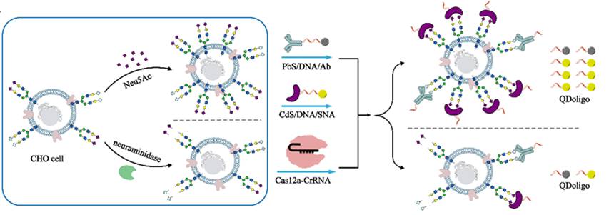 具有灵敏度高、成本低廉、操作简便等优势的电化学技术与高反式切割活性的CRISPR/Cas体系相结合,通过检测细胞表面Neu5Gc与Neu5Ac的两种唾液酸分子的比例,可实现对膀胱癌发展的评估。该研究团队所提出的比率型电化学方法不仅对预测肿瘤的发展阶段具有很大的潜力,而且为同时监测多个癌症标志物而预测肿瘤发生发展提出了新的可能,对研究肿瘤的发展机制和药物治疗也具有重要的指导意义。