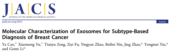 近日,我校365英国上市网分子识别与生物传感研究中心李根喜教授团队在国际著名学术期刊《Journal of the American Chemical Society》上以内封面论文的形式发表了题为“Molecular Characterization of Exosomes for Subtype-Based Diagnosis of Breast Cancer”的原创性研究论文。