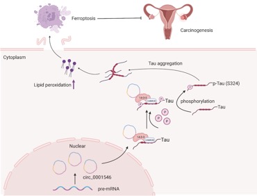综上所述,该研究结果为hsa_circ_0001546/14-3-3/CAMK2D/Tau复合物的存在提供了新的证据,Tau蛋白聚集导致的铁死亡不仅存在于阿尔茨海默病或帕金森病等神经退行性疾病相关细胞中,还发生在EOC细胞中,并且这种由hsa_circ_0001546/14-3-3/CAMK2D/Tau复合物驱动的铁死亡是LPO依赖性的,而不是GPX4依赖性的。本研究通过一系列探索从铁死亡角度探究了hsa_circ_0001546的功能,为卵巢癌的临床诊断和靶向治疗提供新的靶标。