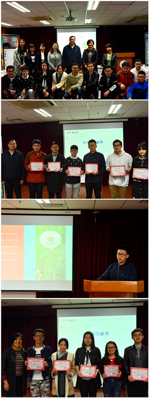大会开始时,首先由上一任队长刘伟棠对过往的成果进行了展示和总结,并对下一届团队做出了期翼。然后全场观看了"情系蒲公英"节目。节目主要包括关于志愿服务的相声与"蒲公英版"的歌曲《知足》。观看结束后,进行了上一届优秀队员的颁奖仪式和新一任队员的聘书颁发仪式。在新旧两任队员交接之后,继任队长焦冠铭对团队的建设和未来规划进行了阐述。他强调:"要多多发动大一的新鲜力量,在做出成果的同时,也要让蒲公英的名气更响亮"。之后,金玉凤老师、邓志瑞老师、顾红老师作为出席的老师代表进行了讲话。邓老师指出"四小而大":小学院大平台,小团队大作为,小学院大担当,小学院大作为。既对希望团队能有大作为,也表达了学院会是我们忠实的后盾。