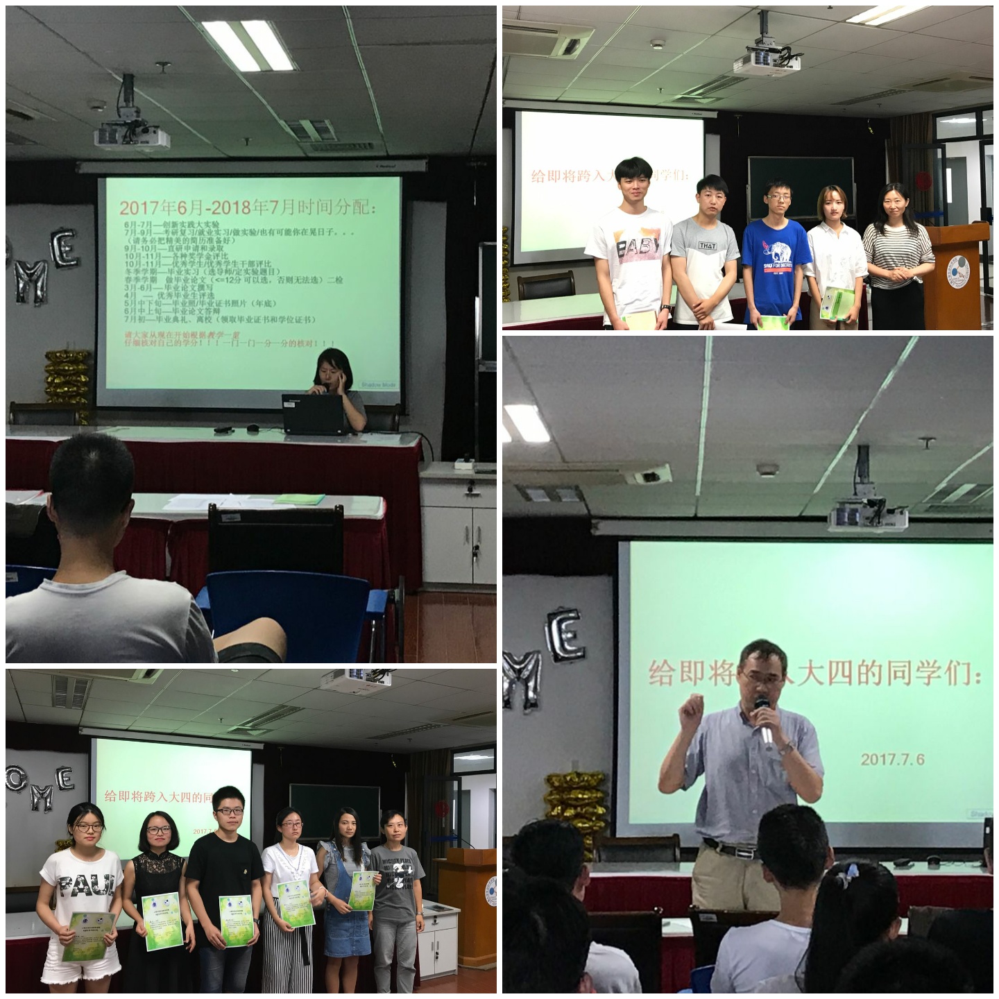 大会第二项是邓志瑞老师的精彩讲话,邓老师做了几点强调:第一,鼓励每个同学积极参加本周六的生物实验技能竞赛,检验大家的实验技能,为自己大学经历增添一点光彩;第二,征兵活动已经开始,邓老师鼓动同学们积极参军,年轻人应该到部队锻炼一番,你将收获颇丰,如:学会吃苦耐劳的精神,你还会享受非常多的优惠政策,希望大家积极报名为祖国贡献自己的力量;第三,帮助同学们明确大四的出路,希望大家明确目标,规划好未来一年的生活,尤其是明确暑假要做的事情,如:考研复习、制作简历找实习等。无论大家选择何种方式度过暑假都应该注意自己的安全,过一个放心的暑假。