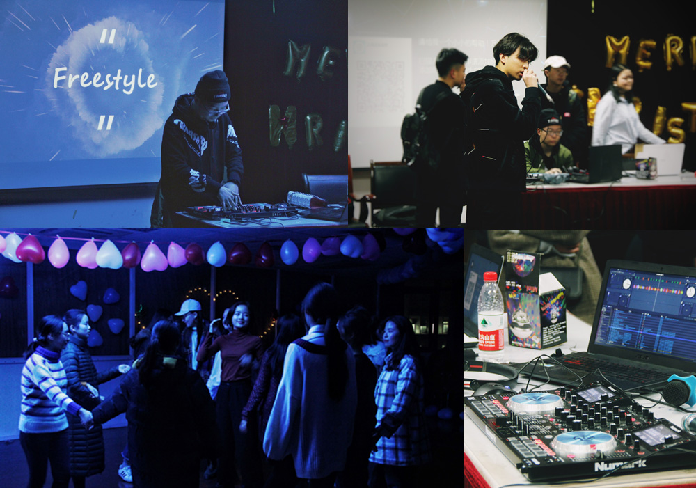 本次新年派对由吉他协会主持,到场参与学生约有60人。作为抛砖引玉的暖场环节是一段持续20分钟的3人吉他弹唱表演,把在场同学带入了一种兴奋的状态。接着是OMC社团的说唱时间,此环节持续约半小时,将现场气氛继续推向高潮。随后便是两院学生的自由表演时间,同学们载歌载舞,很是热闹。在流行音乐的渲染以及美食的烘托下,同学们都纷纷开始结交身边的陌生人,达到了新年派对的联谊目的