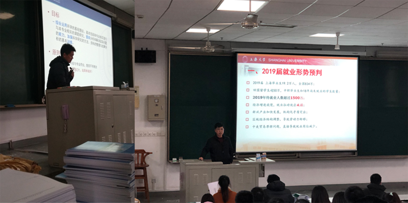 2019年1月4日下午1点30,我院15级本科生全体成员在计J101参加毕业班年级大会暨生命学院就业指导大会,校招毕办主任傅新华、我院专业教师高海燕、黄俊逸,参加本次会议,辅导员海棠主持大会。