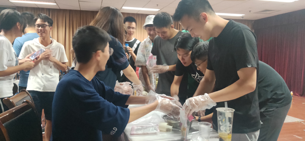 经过快乐又激烈的游戏积分赛,各个游戏小组都获得了各自的小组积分和功能牌,之后大家聚集在801活动室,进入了更加有趣热闹的"做月饼"环节。无论有没有经验,小伙伴们都积极地参与到其中,动起了小手,收获满满。