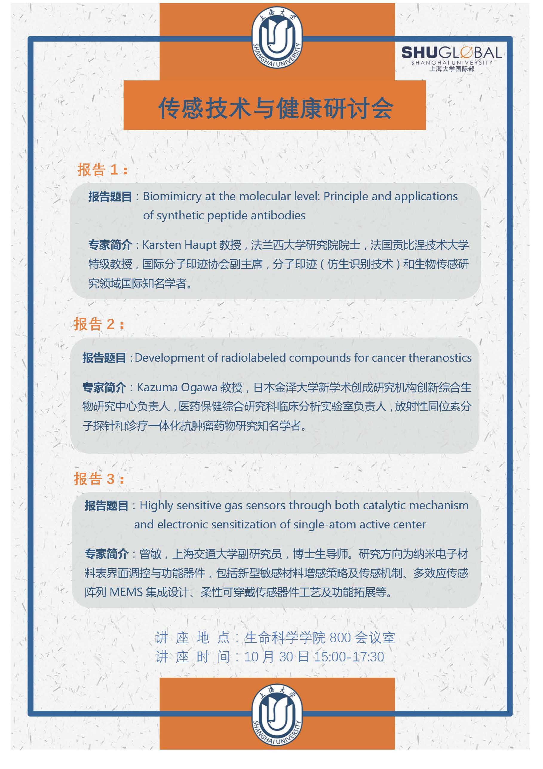 | 报告人 | Karsten Haupt 教授等 | 报告时间 | 2024年10月30日(周三)下午15:00 |